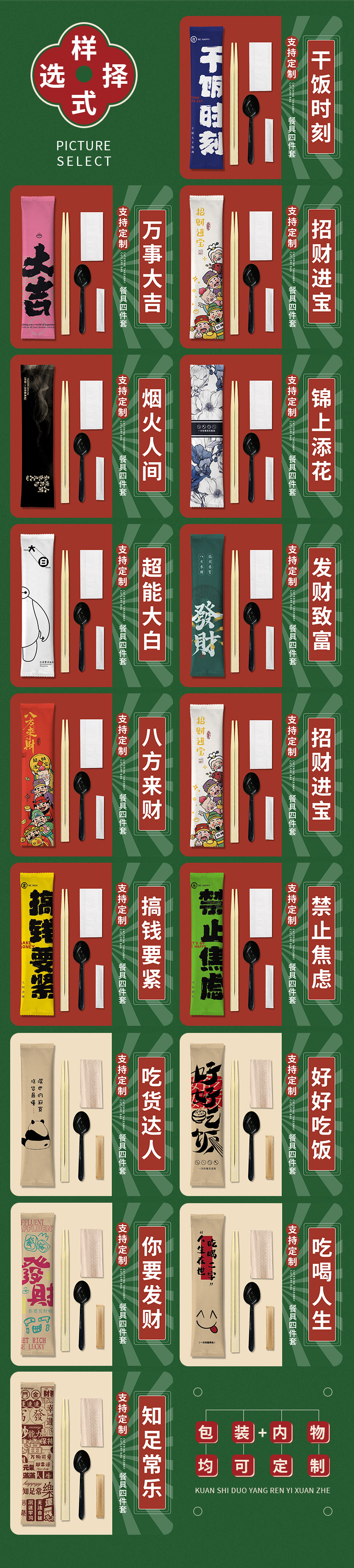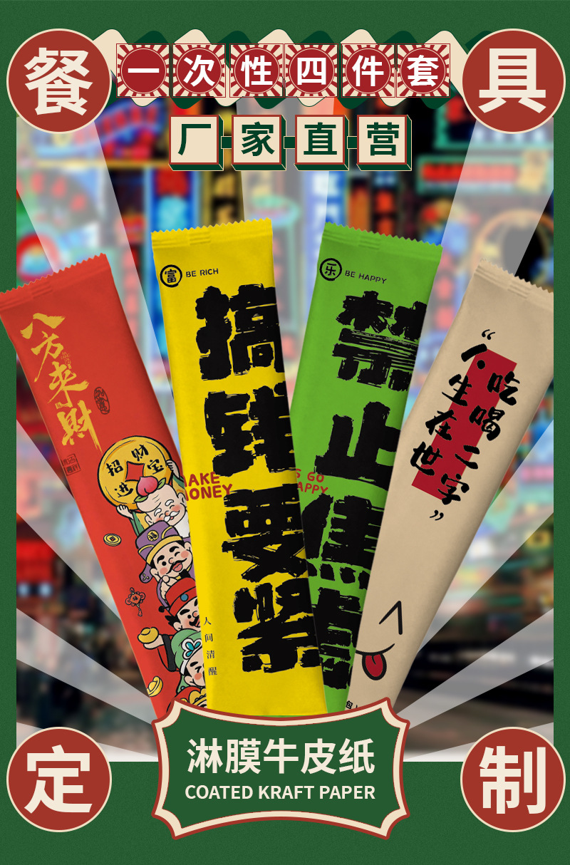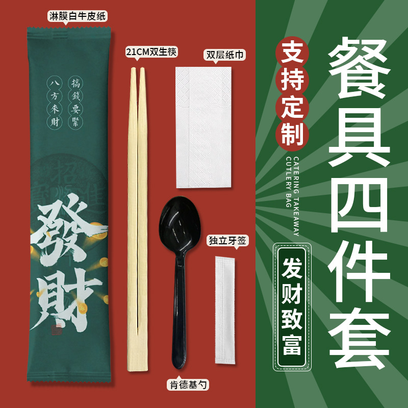 wealth comes from every direction plastic cutlery set with napkin four-piece set 100 sets