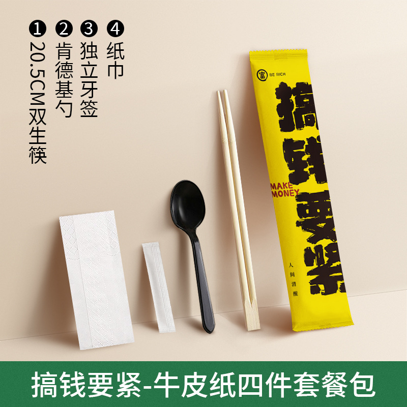 making money is the priority plastic cutlery set with napkin four-piece set 100 sets