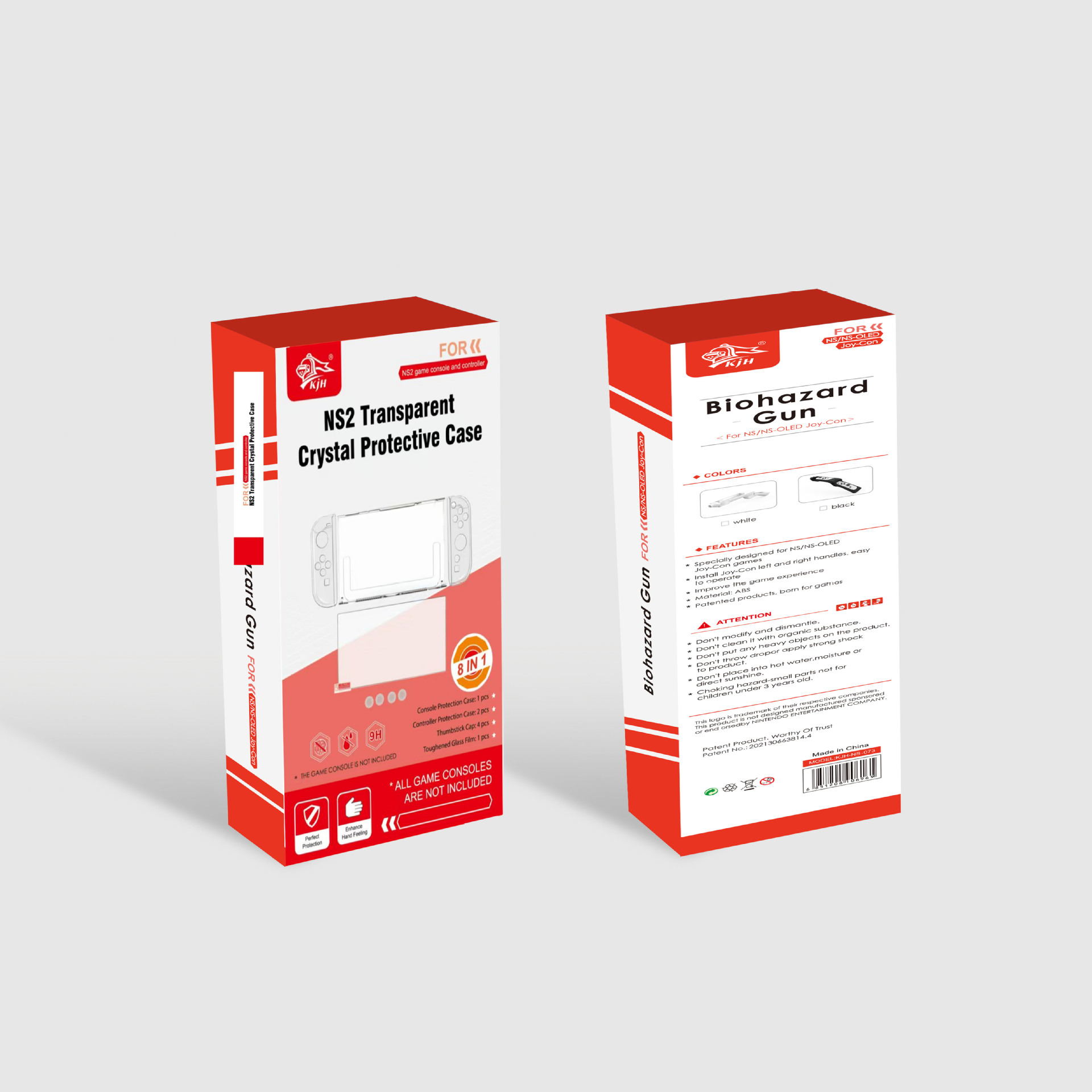 2.包括1pcs主机保护壳,1pcs右手柄保护壳,1pcs左手柄保护壳,1pcs钢化玻璃膜。
