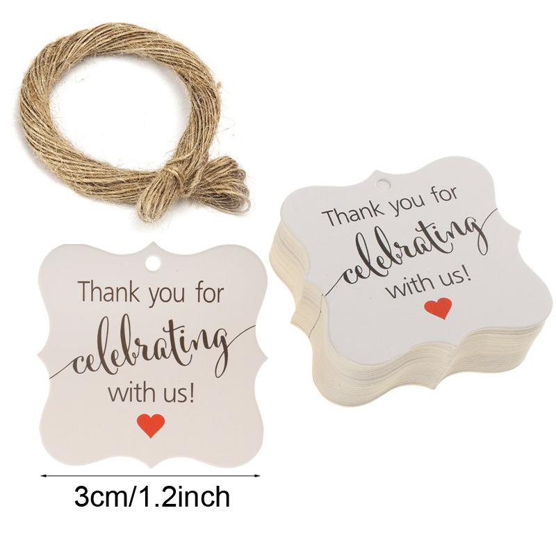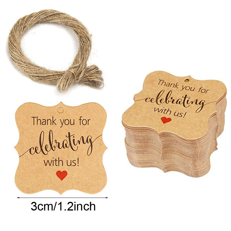 Handmade gift tag, handwritten price tag, thank you for celebrating with us.