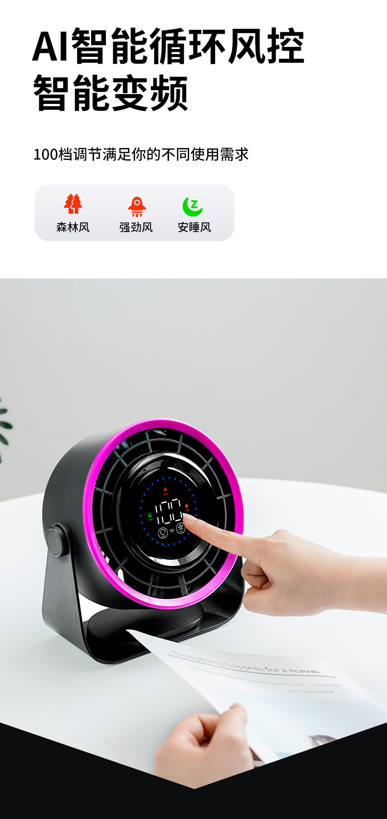 desktop fan-[multi-gear digital display-rose red]]