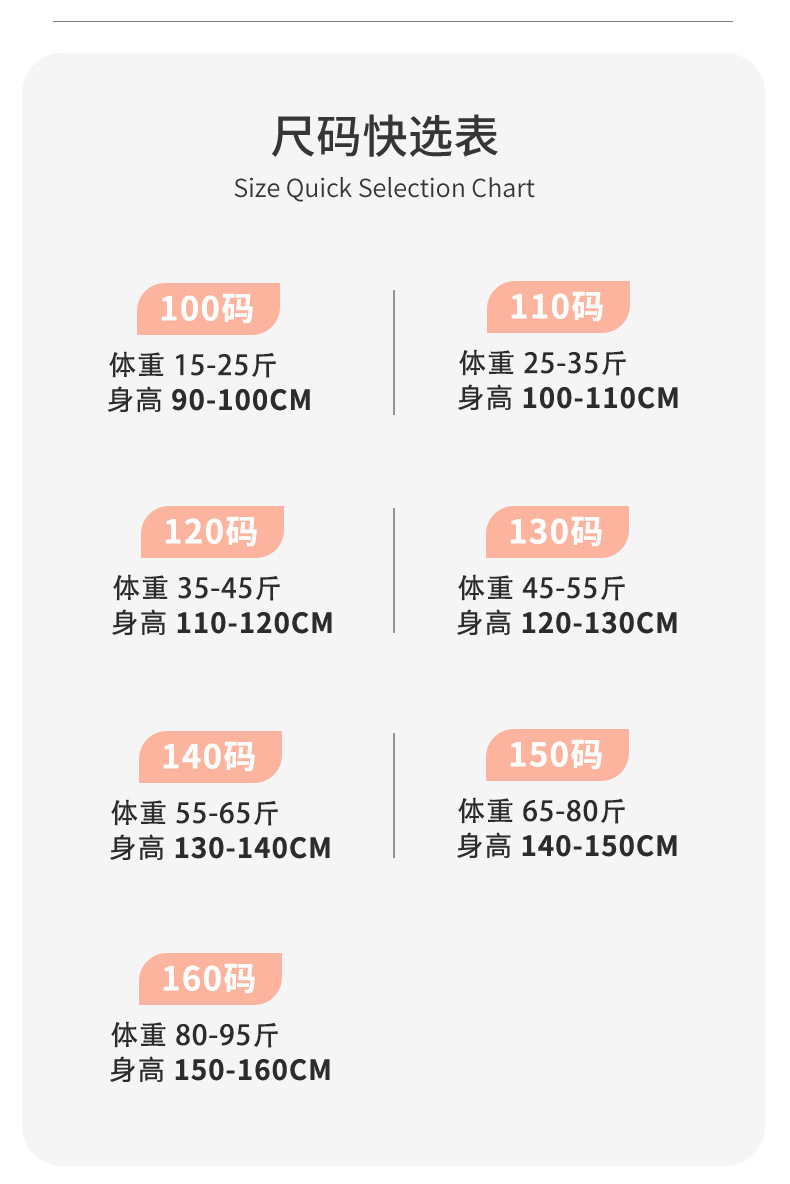 | 110cm [recommended for kids weighing 25–35 jin, height 100–110cm] | CN¥ 0.0 |