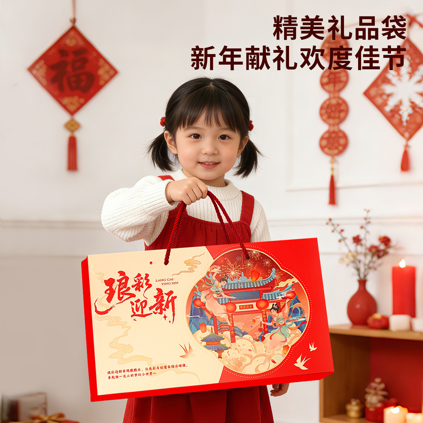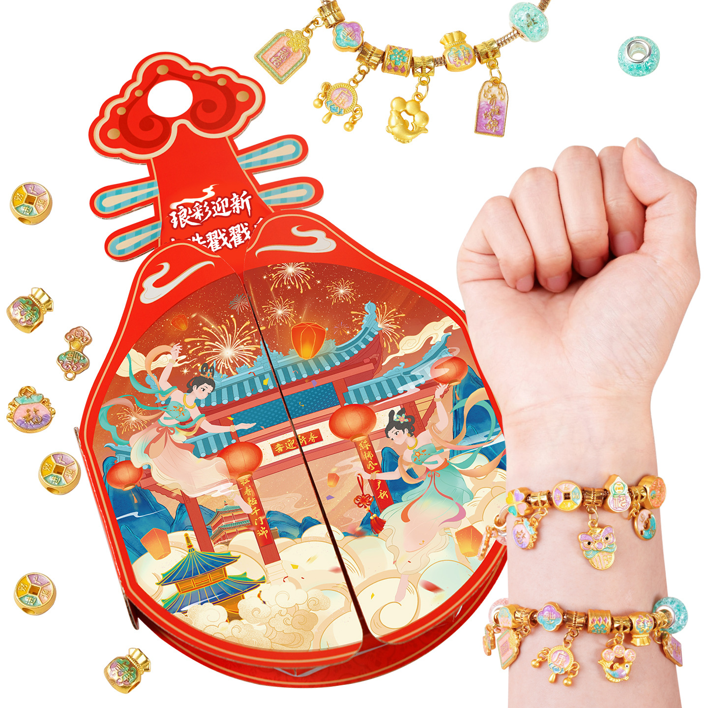 lang cai welcome-beaded new year poke + gift bag + storage box