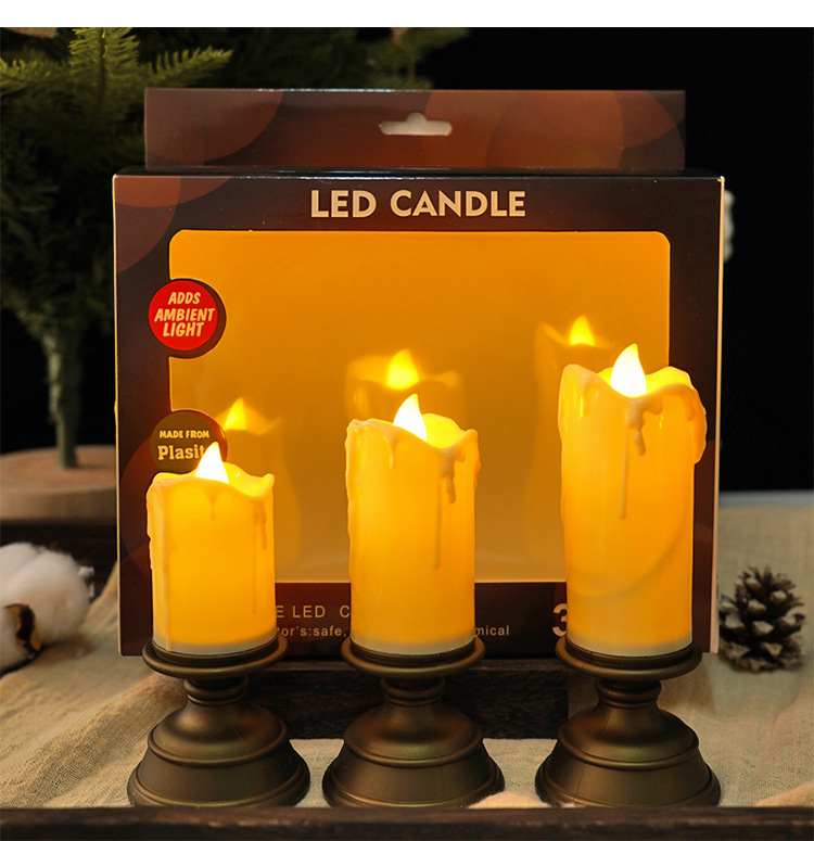 retro candlestick teardrop candles. set of three.