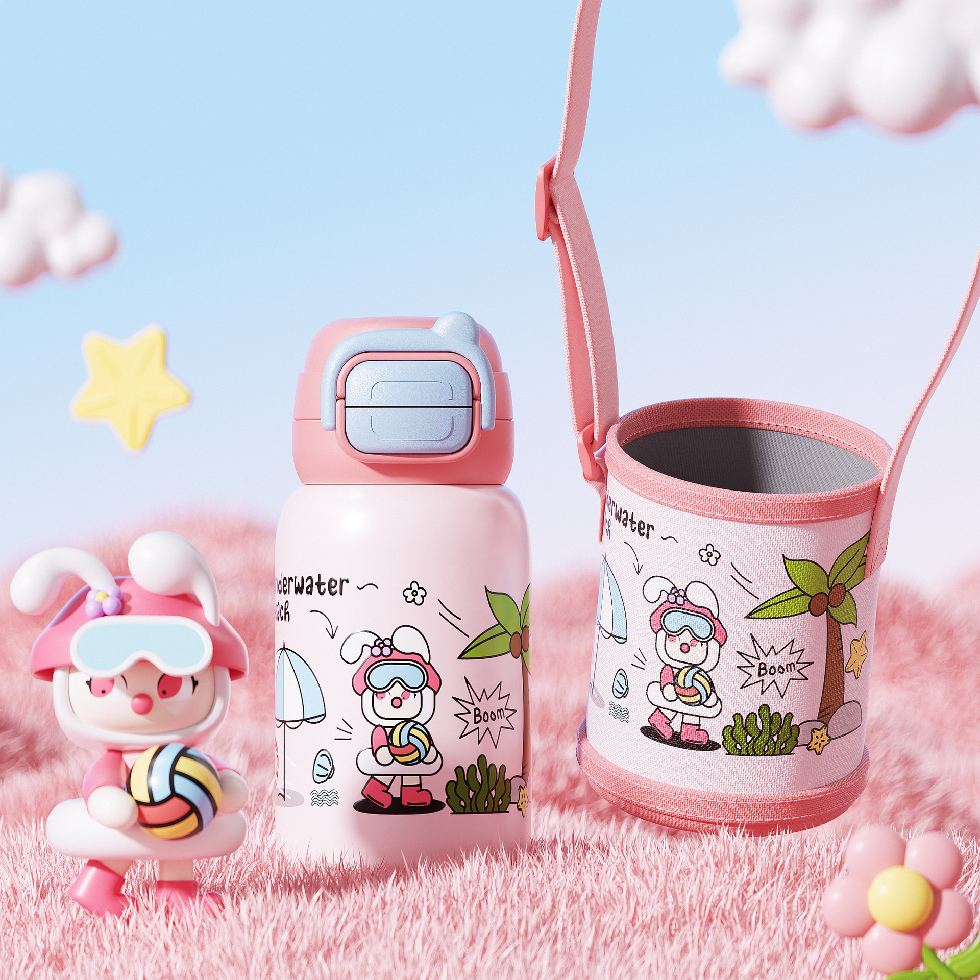 Children's insulated cup 316 stainless steel water cup cute large capacity high-quality appearance girls students one cup three drinking cup