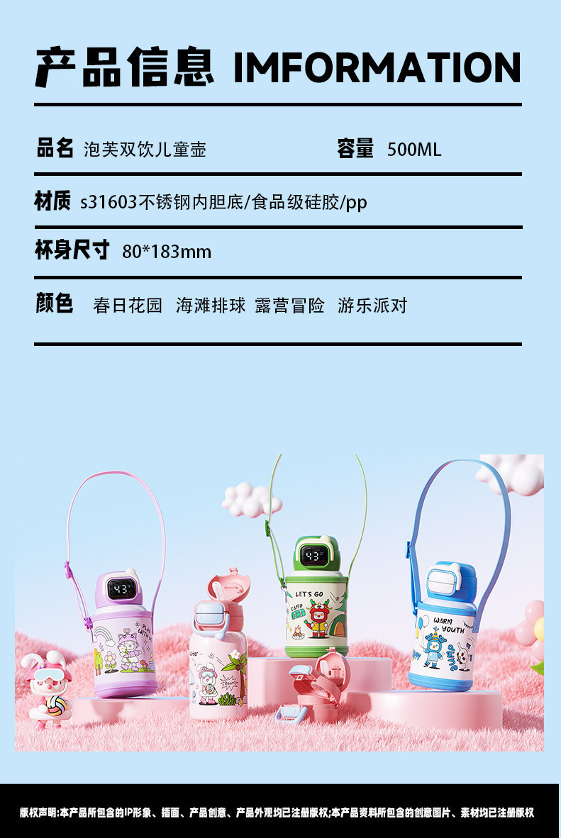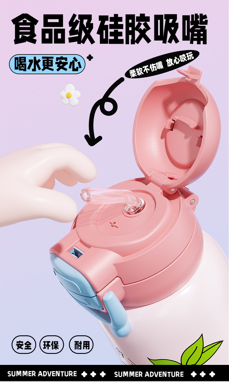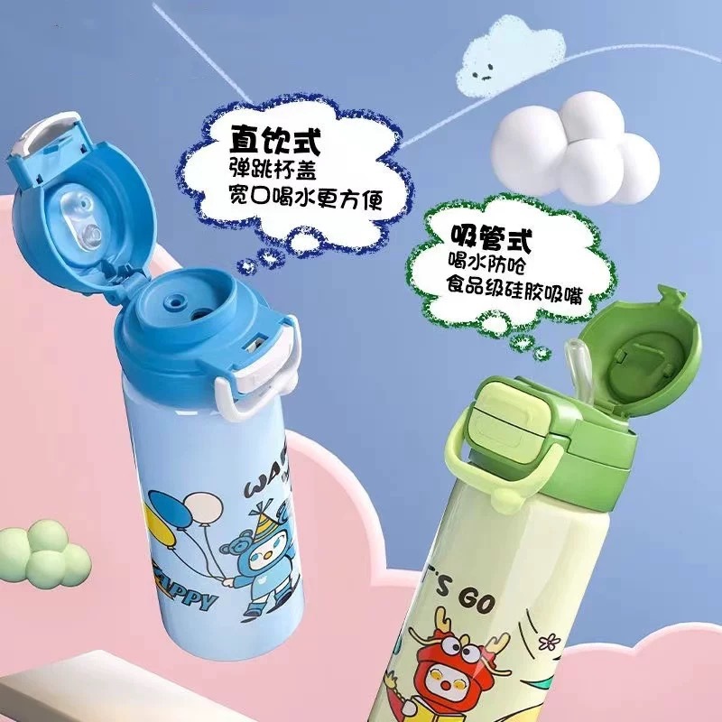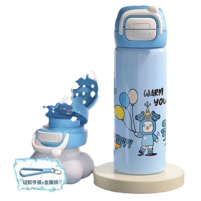 316 stainless steel children's insulated water bottle with large capacity, high-quality appearance, student straw cup, cartoon carrying water cup