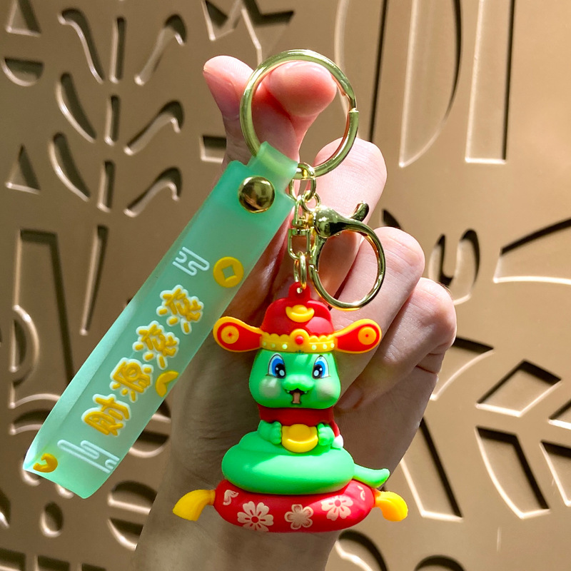 simulated snakes keychain-god of wealth (green)