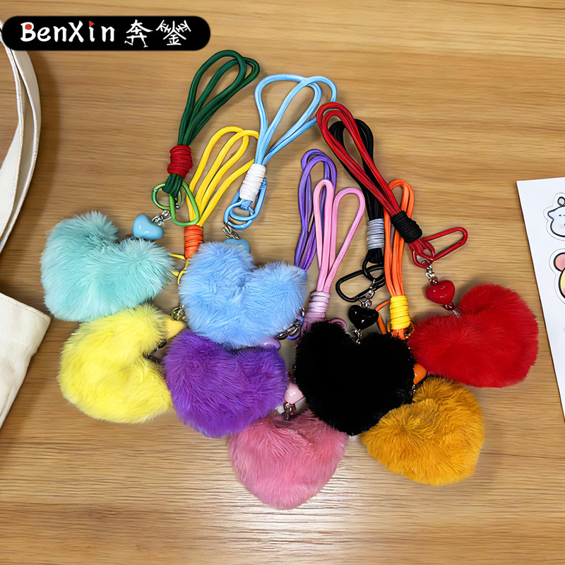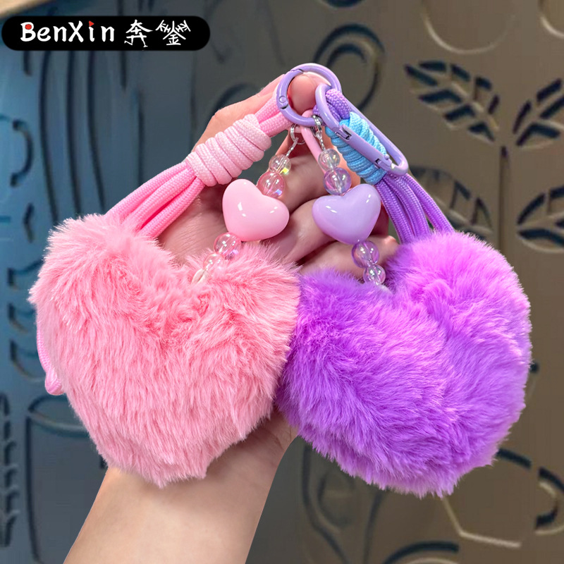 plush loving heart keychain-pink