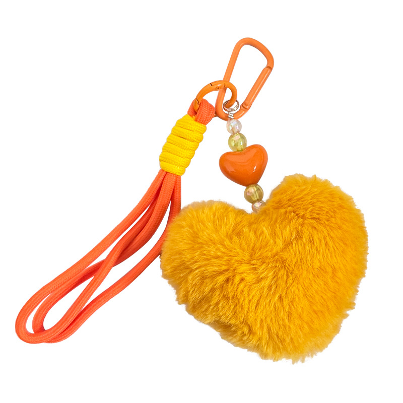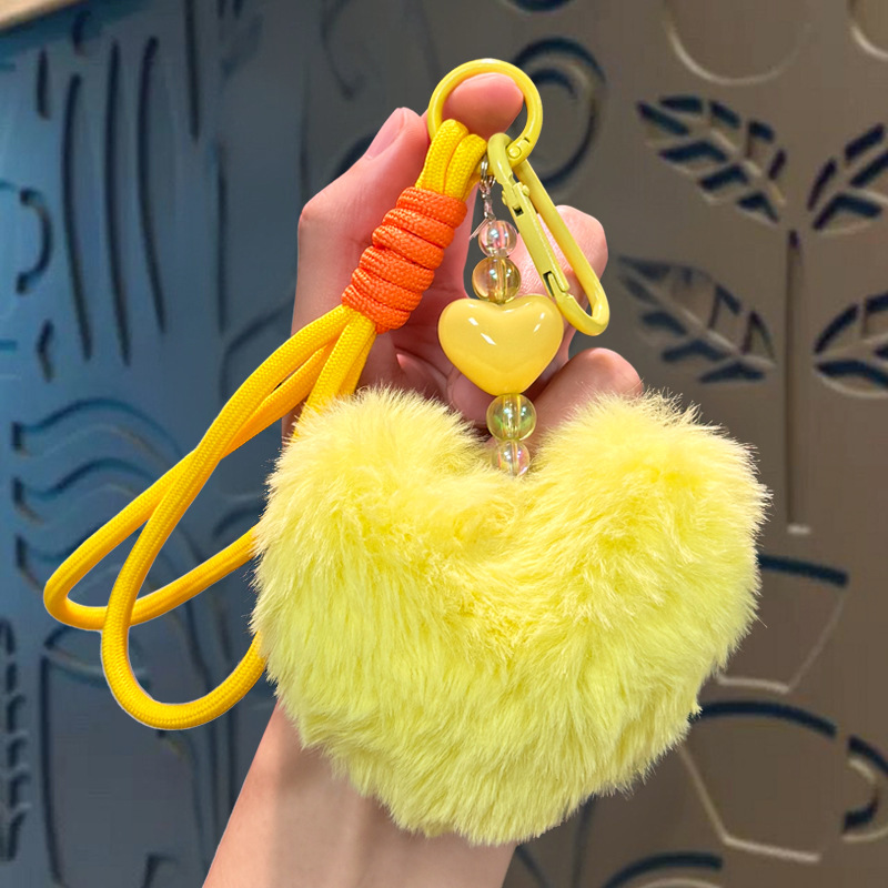 beaded plush loving heart keychain-yellow