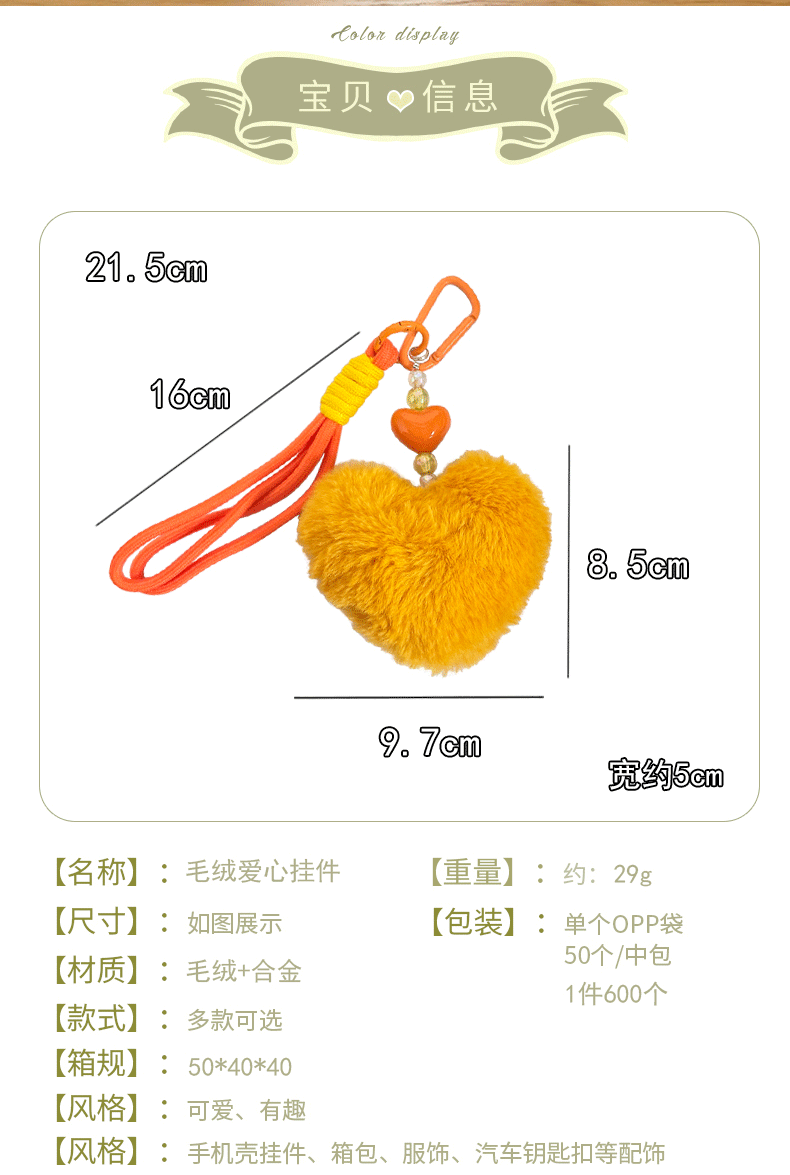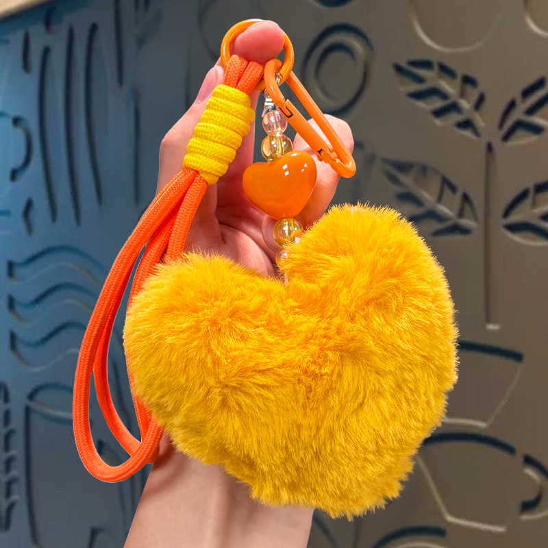 plush loving heart keychain-yellow