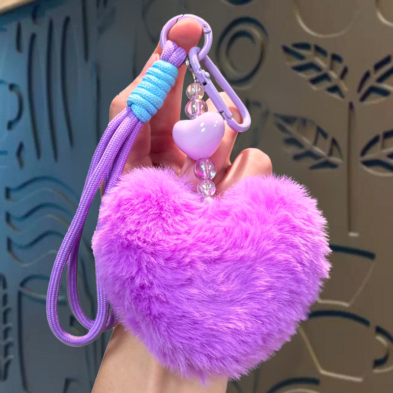 plush loving heart keychain-purple