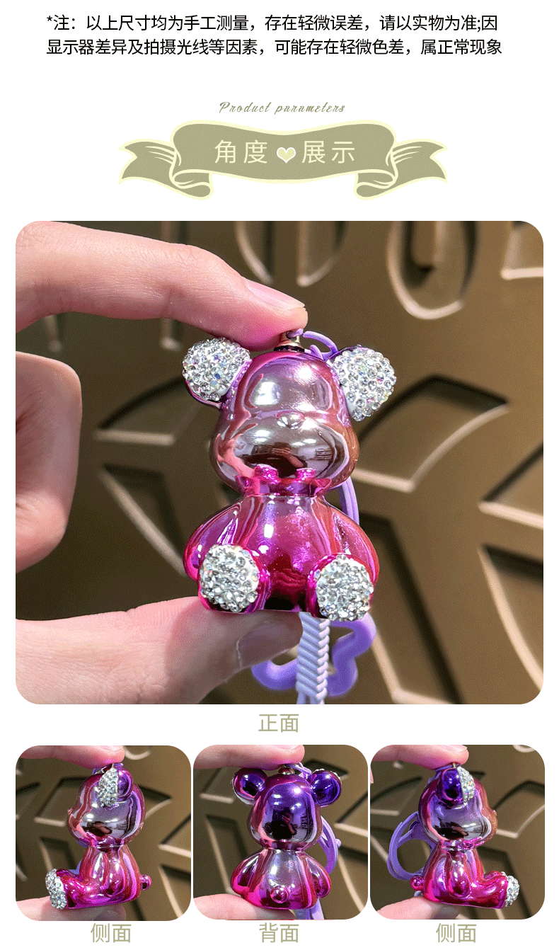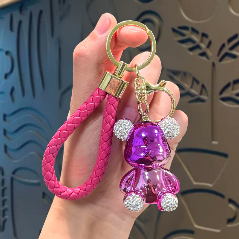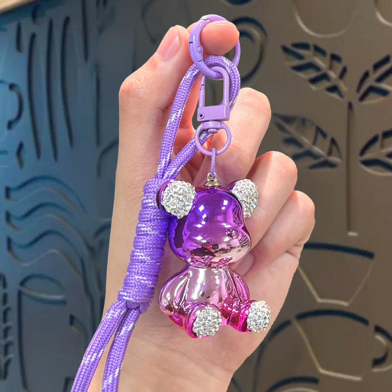 diamond-embedded sitting electroplating bear pendant-nylon rope