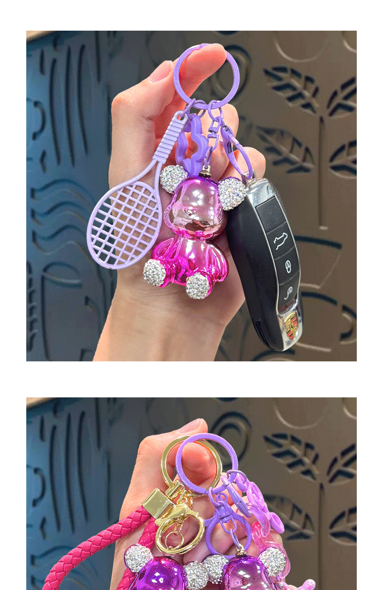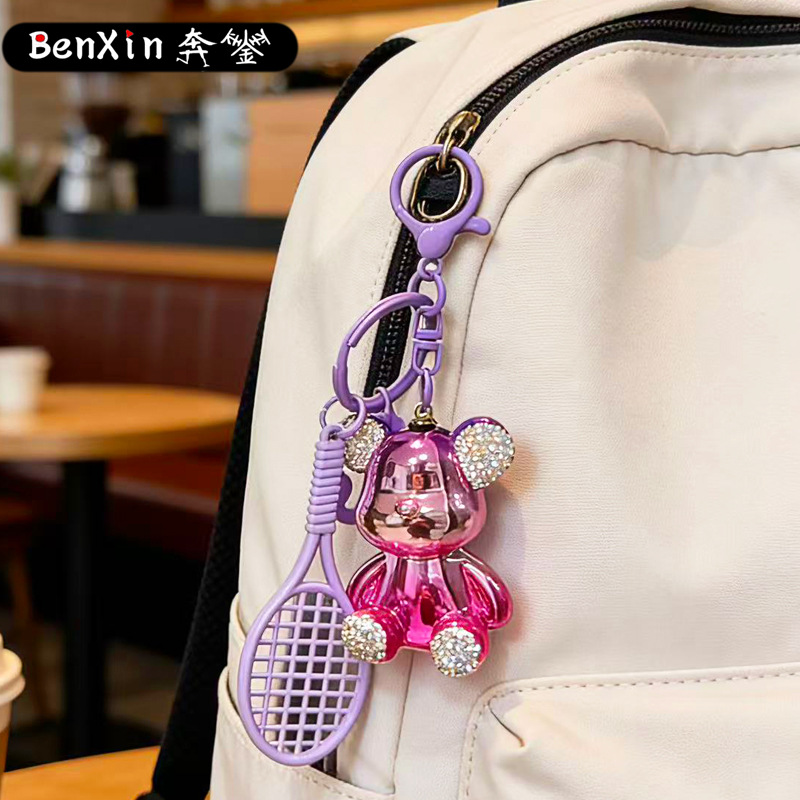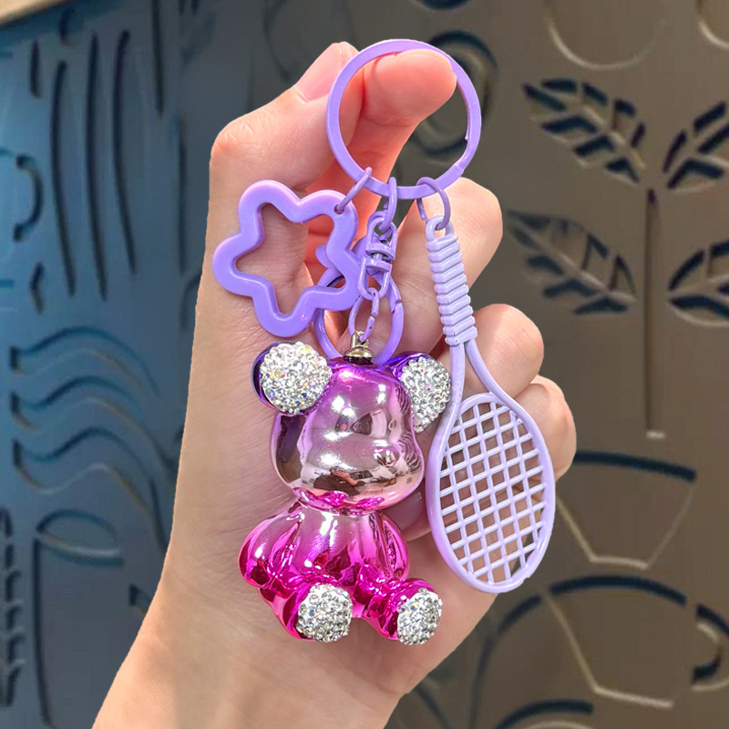 diamond plated sitting bear pendant-badminton racket