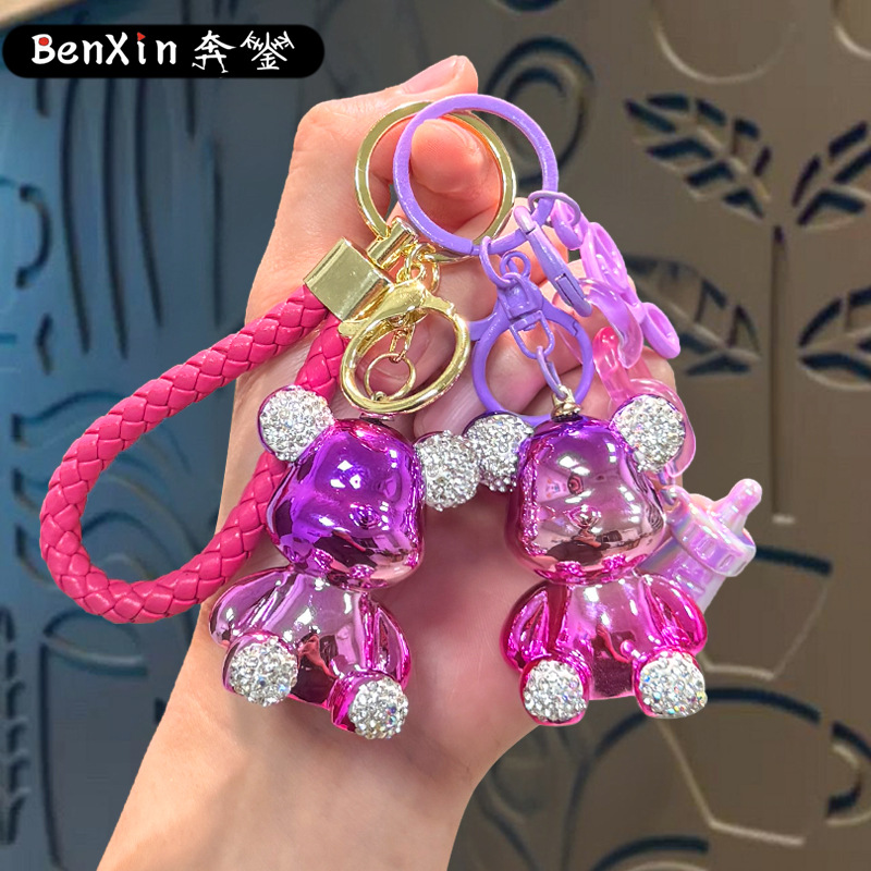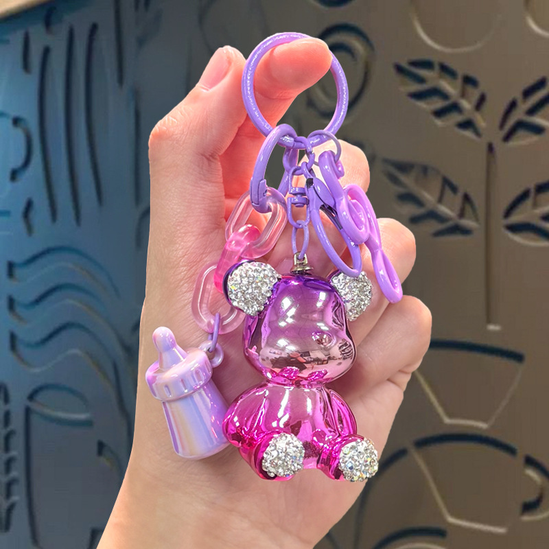 diamond-embedded sitting electroplating bear pendant-tone feeding bottle