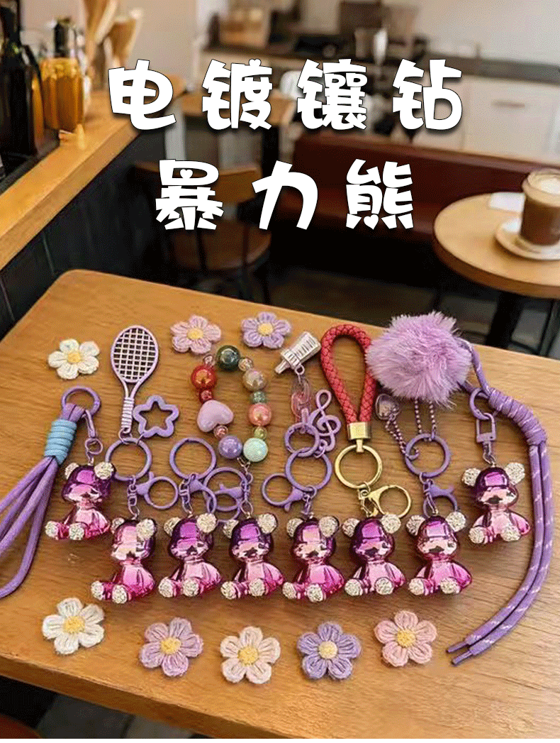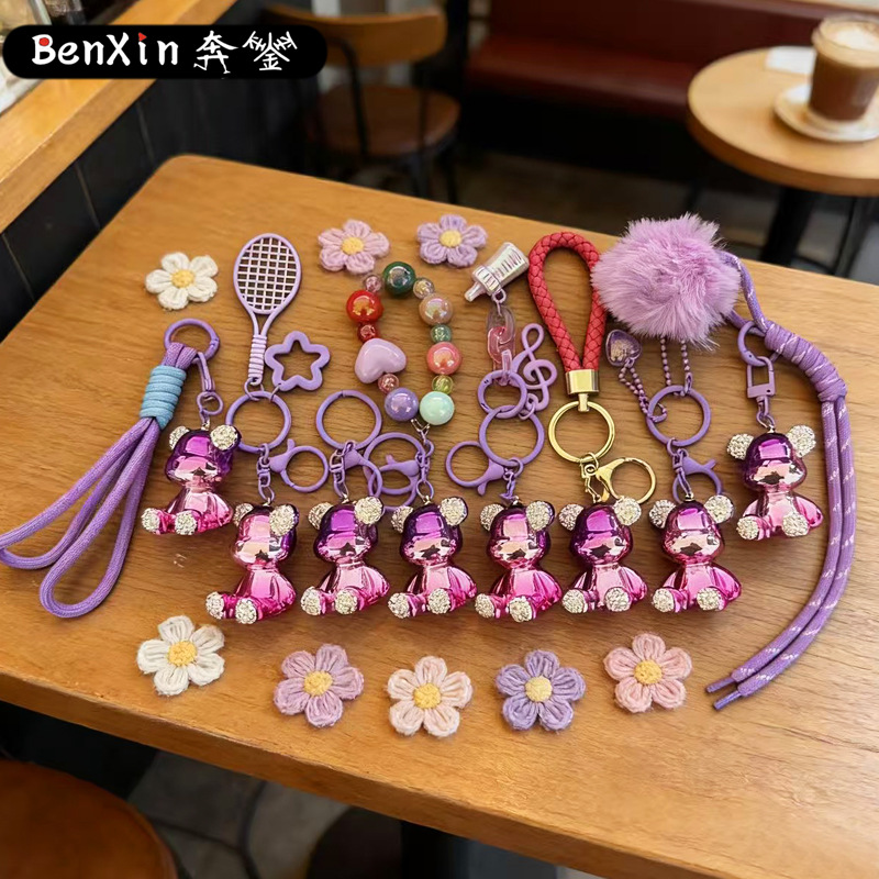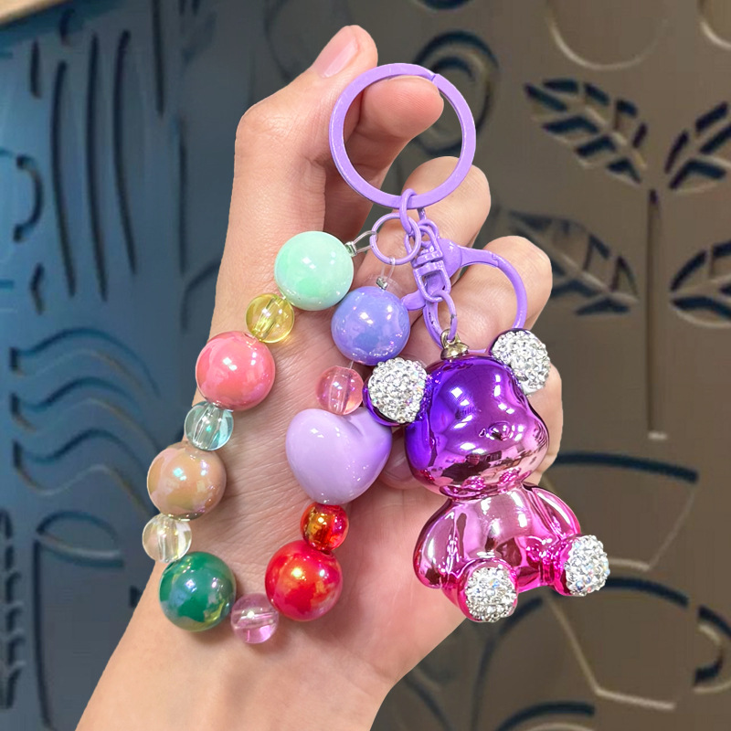diamond-embedded sitting electroplating bear pendant-beaded love
