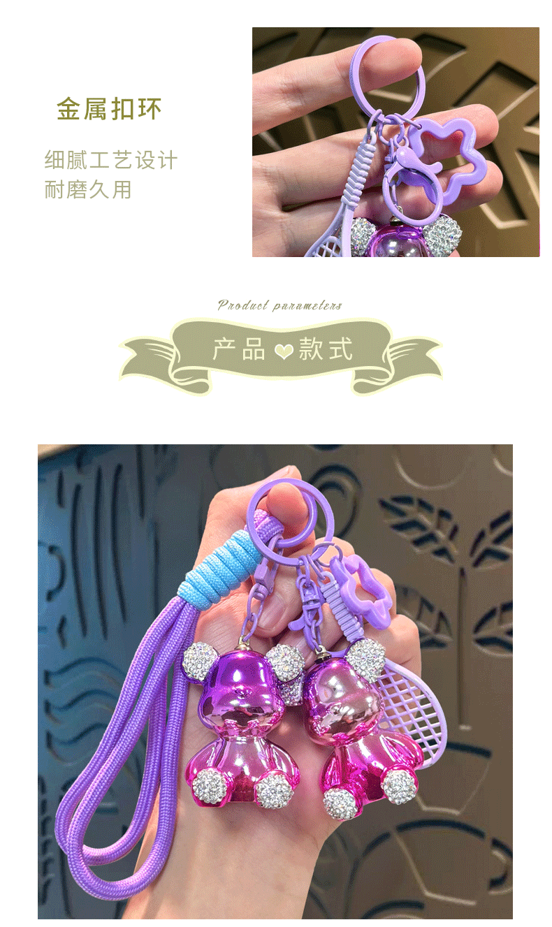 diamond-embedded sitting electroplating bear pendant-nylon double rope