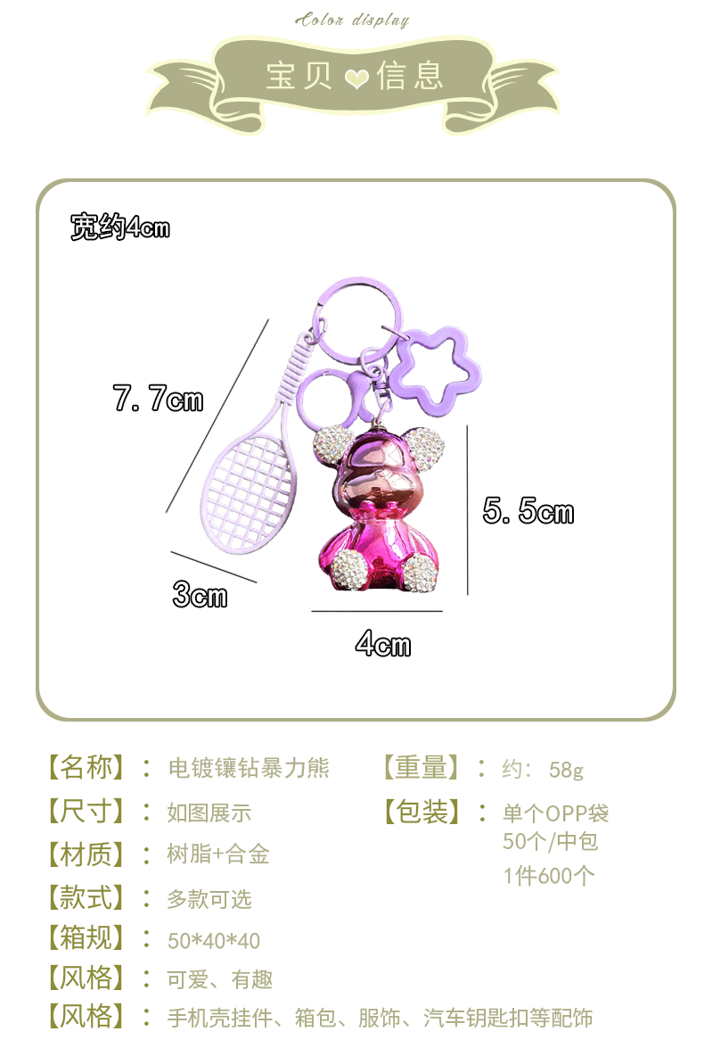 diamond-embedded sitting electroplating bear pendant-fur ball love