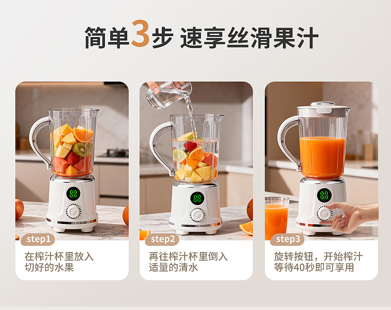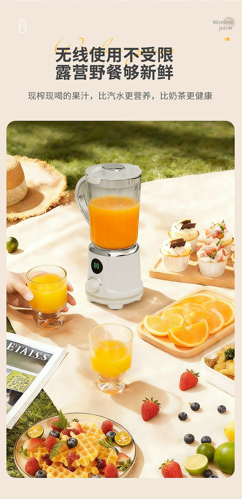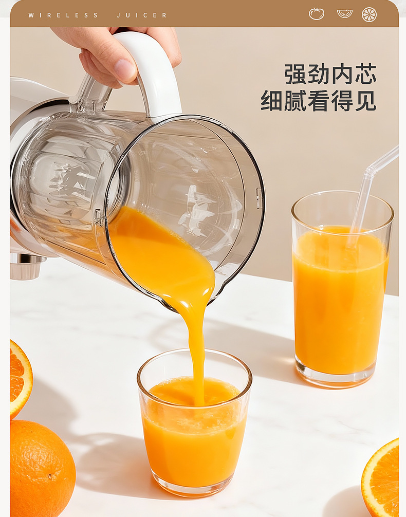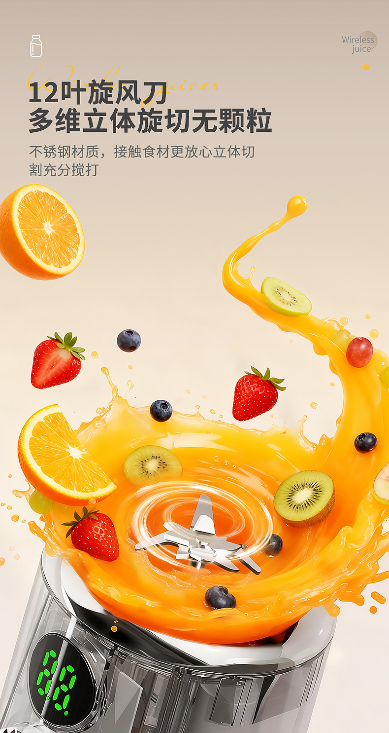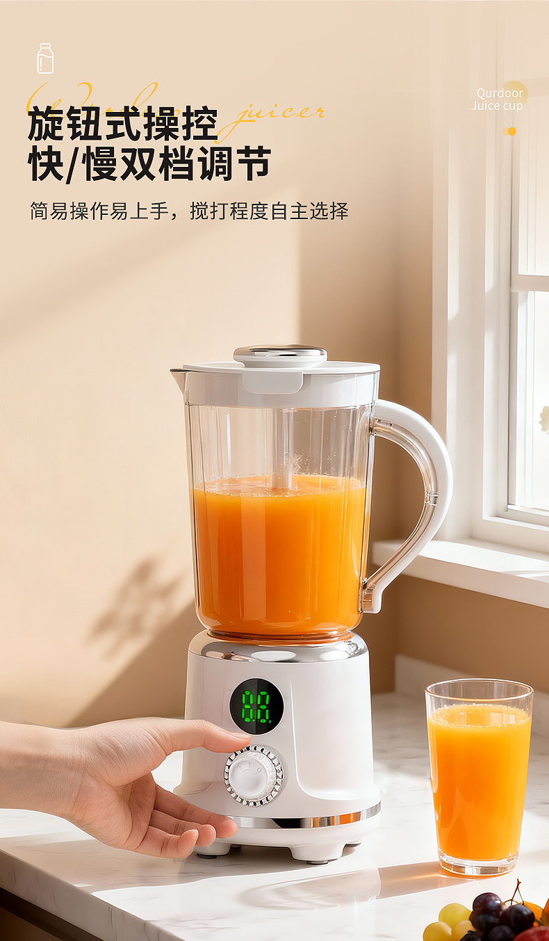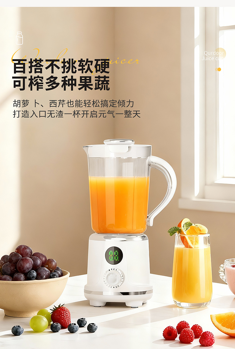 Product standard configuration: lid, cup body, blade head, base, instruction manual, charging cable.