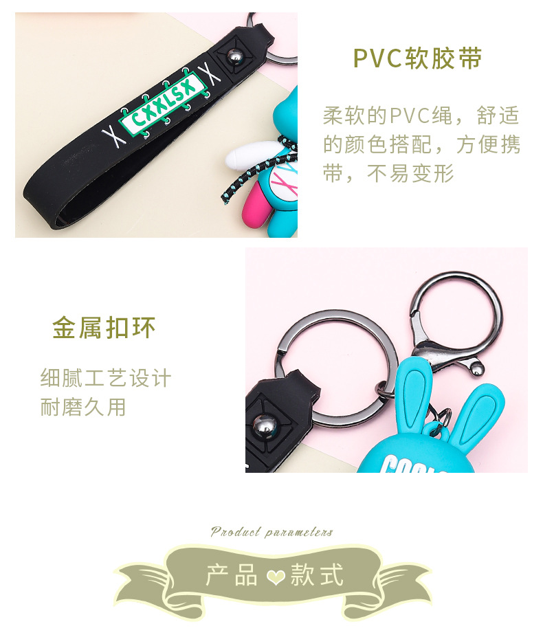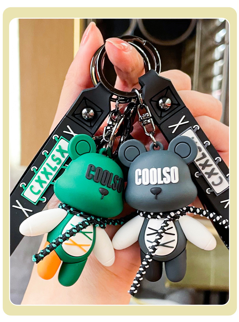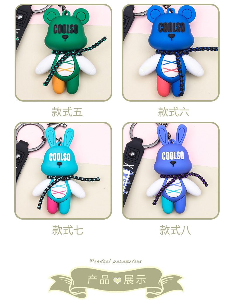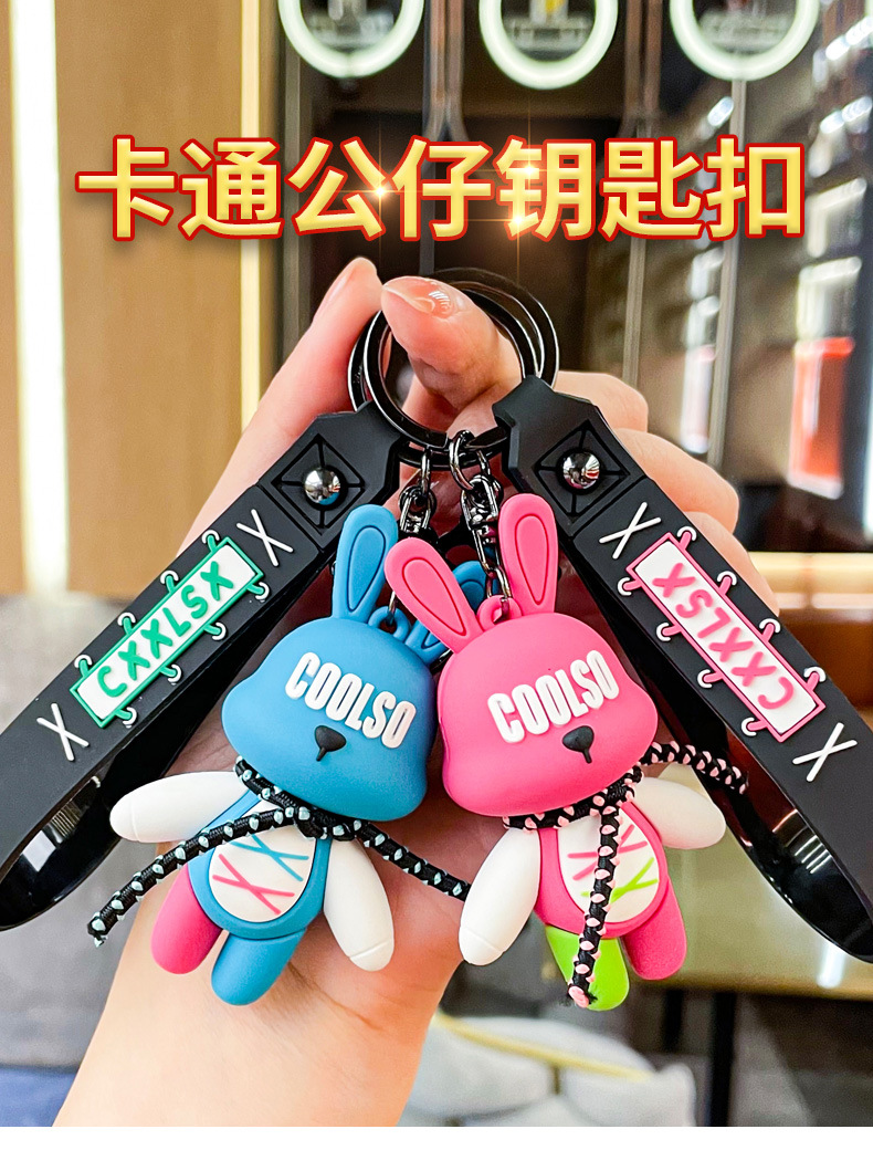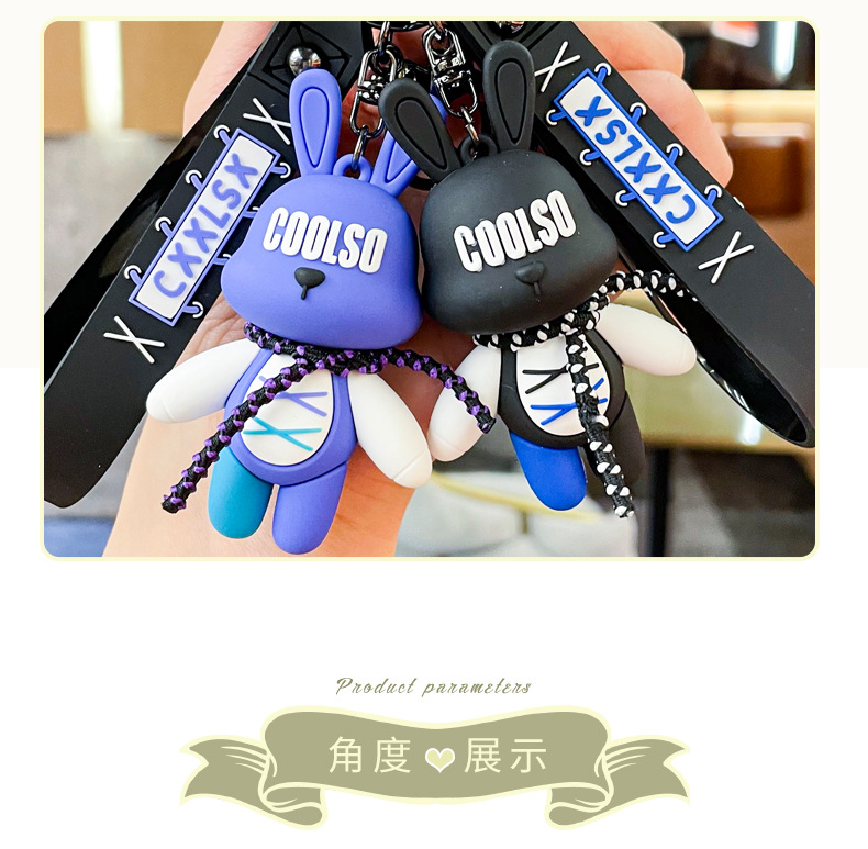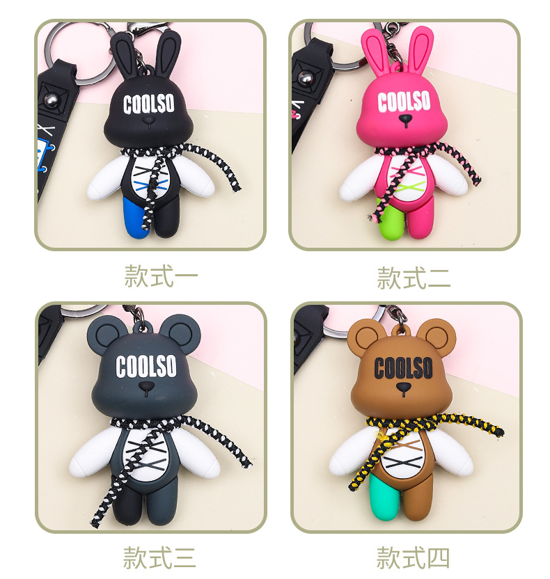 trendy cool lace-up rabbit bear pendant creative car key ring exquisite couple schoolbag ornaments small gift wholesale