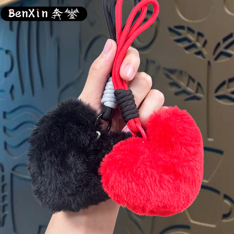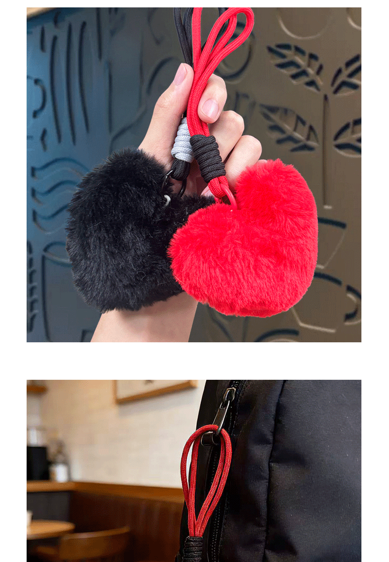 plush loving heart keychain-black
