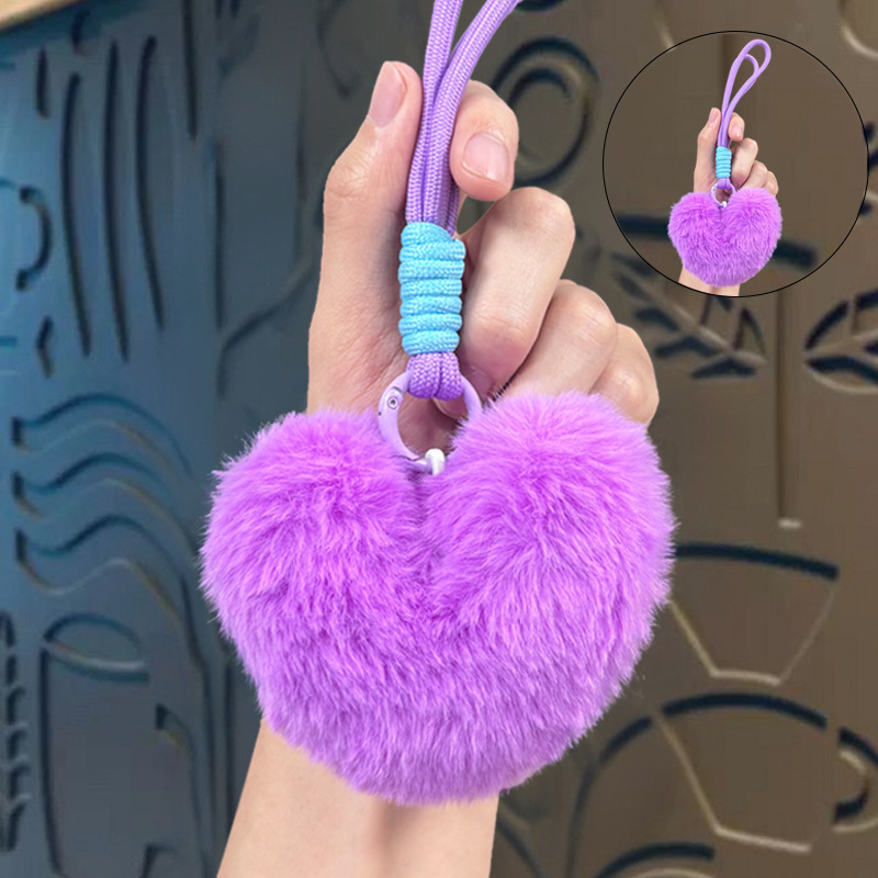 plush loving heart keychain-purple
