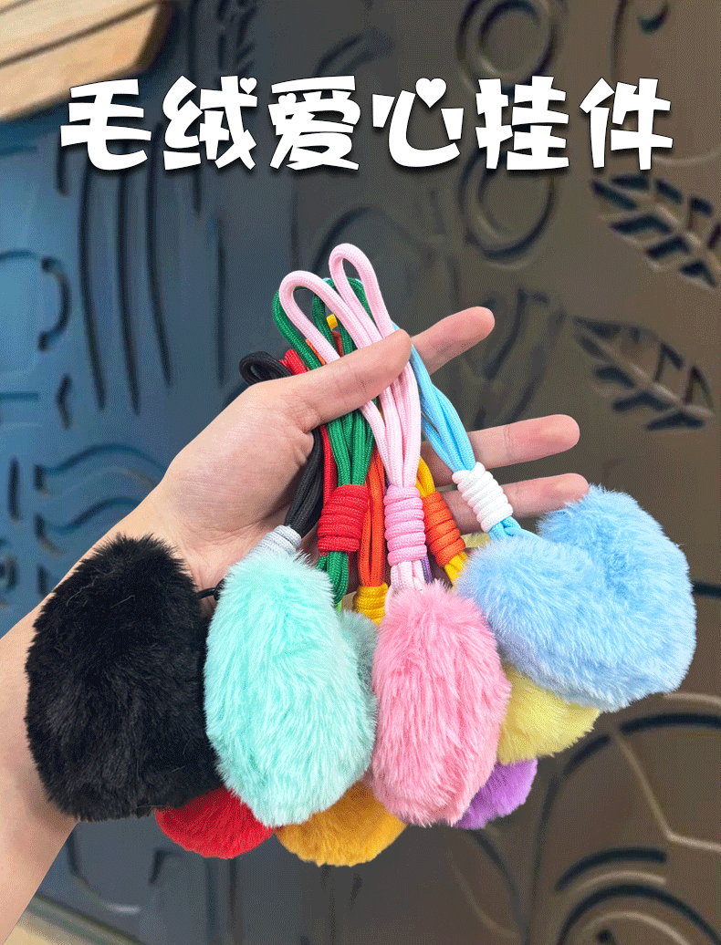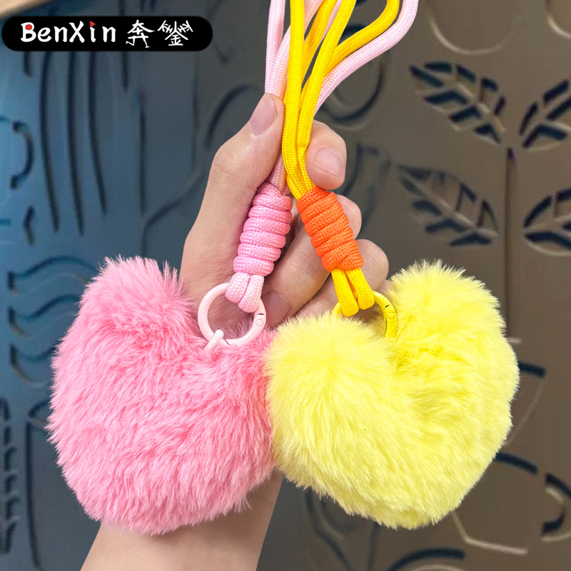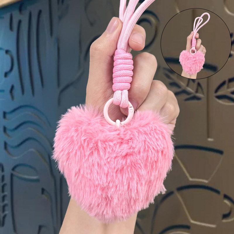 plush loving heart keychain-pink