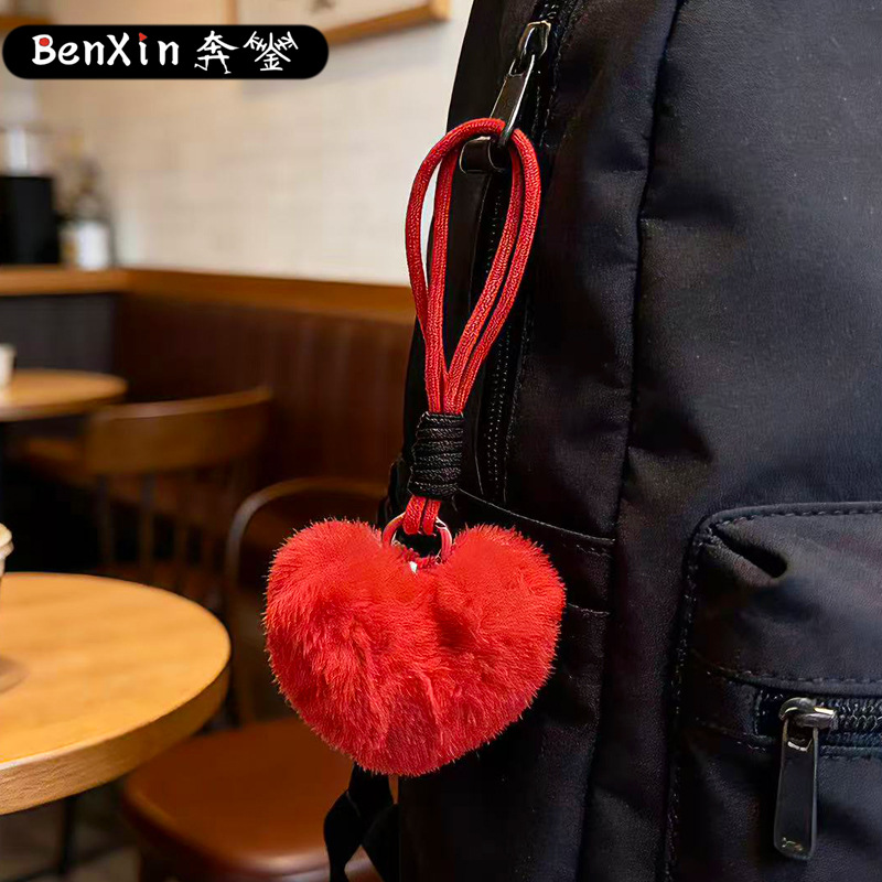 plush loving heart keychain-red