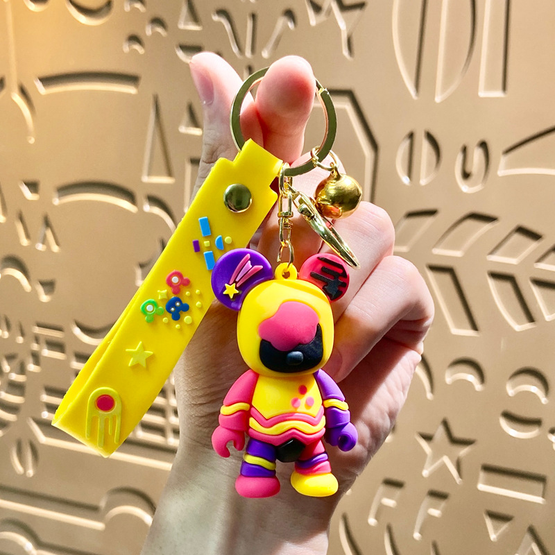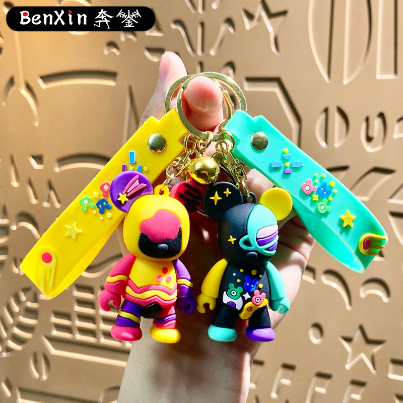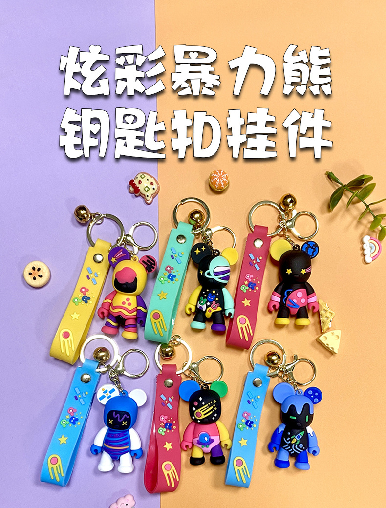 creative cartoon graffiti violent bear keychain handbag pendant car key chain hanging decoration stall small gift wholesale