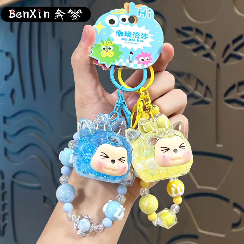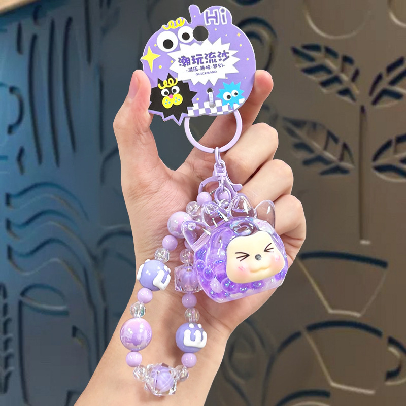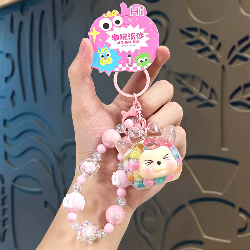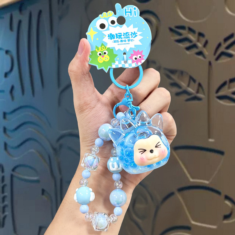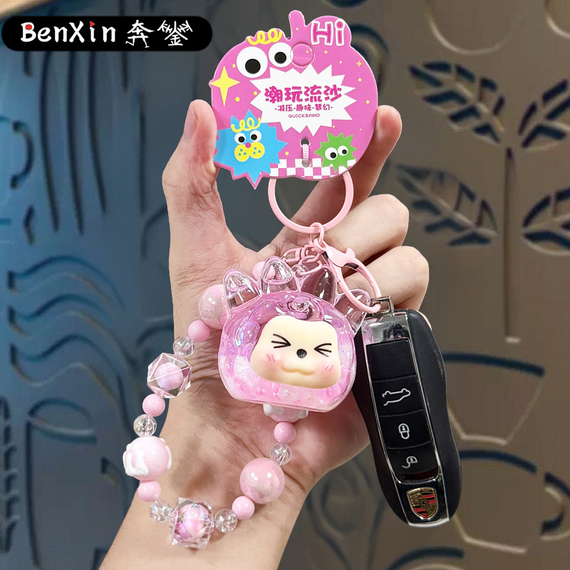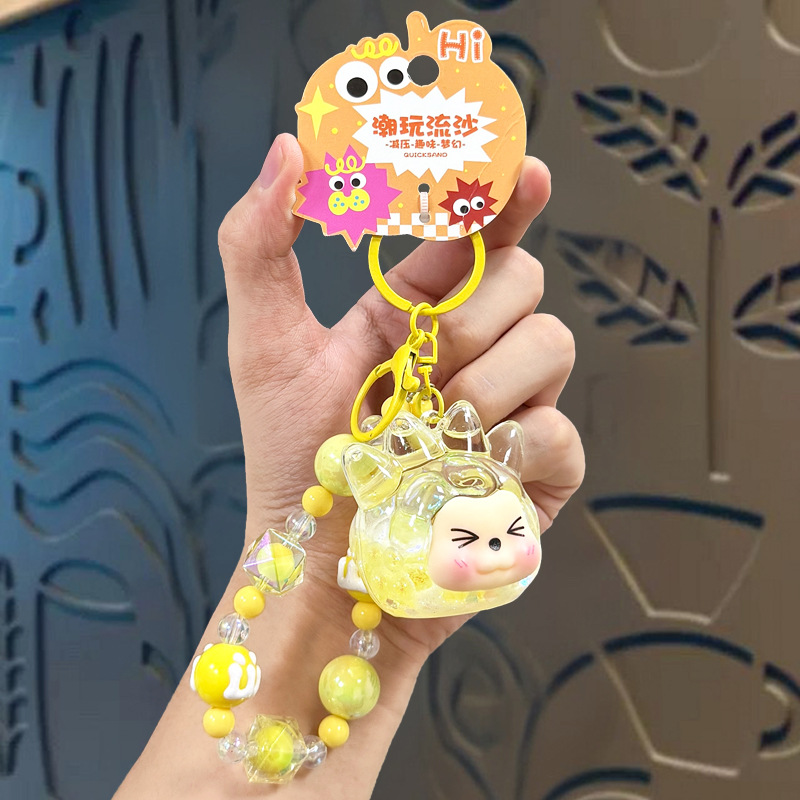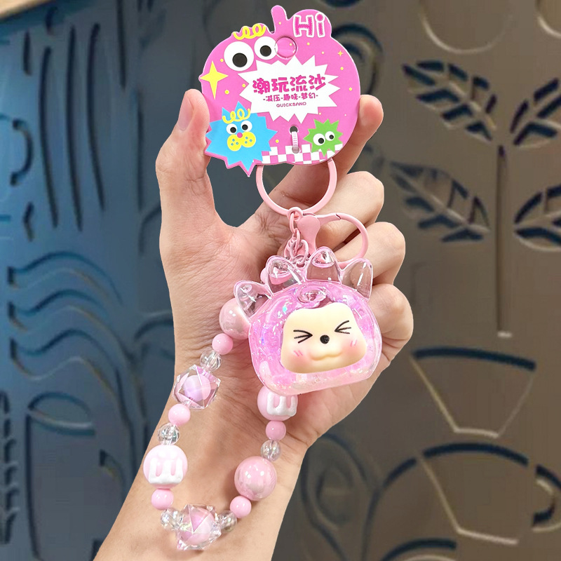 oil crystal luminous quicksand bottle kiki keychain girls' bags hanging beaded mobile phone charm keychain pendant
