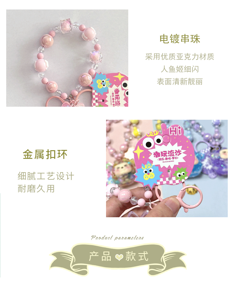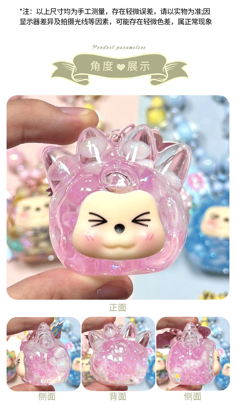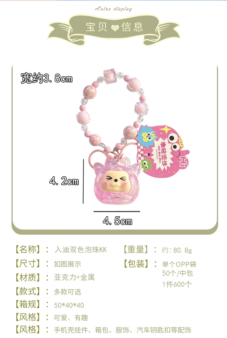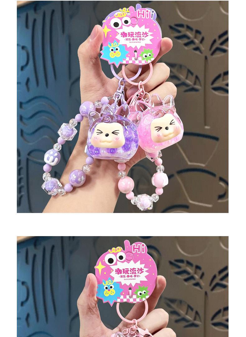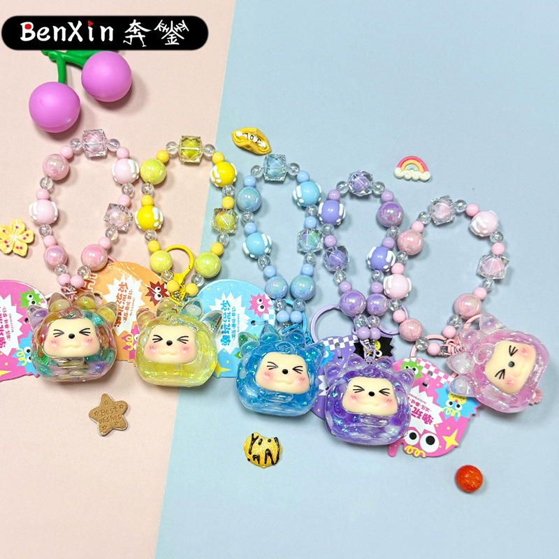 oil crystal luminous quicksand bottle kiki keychain girls' bags hanging beaded mobile phone charm keychain pendant