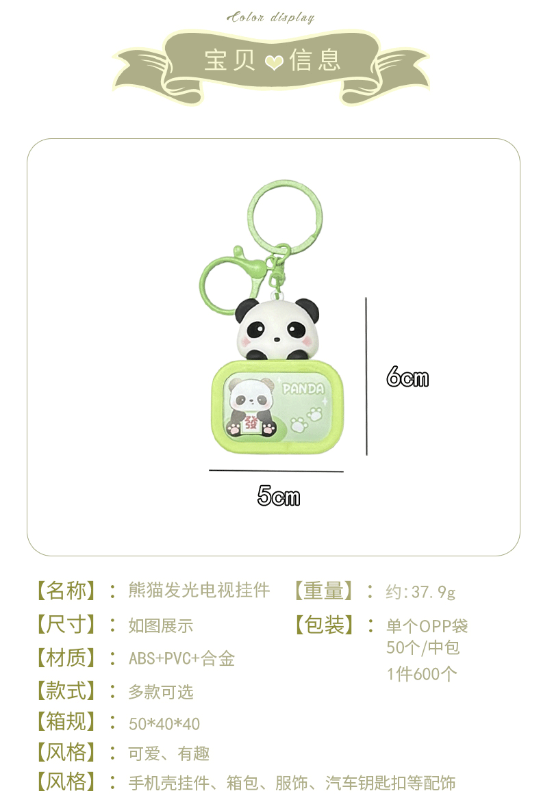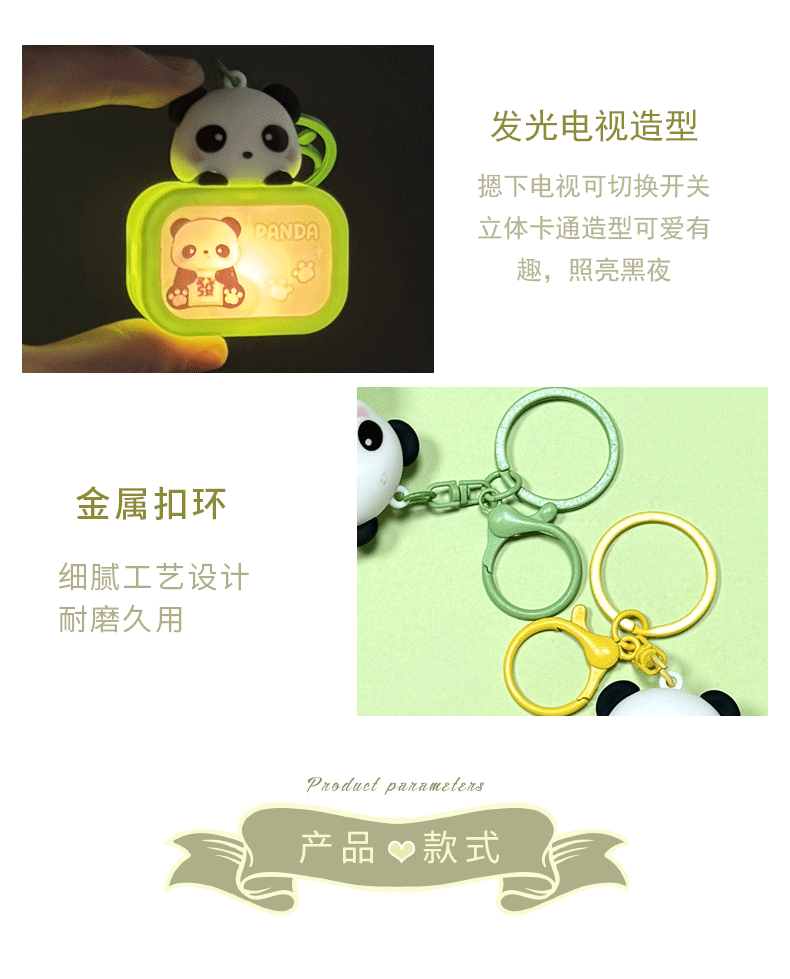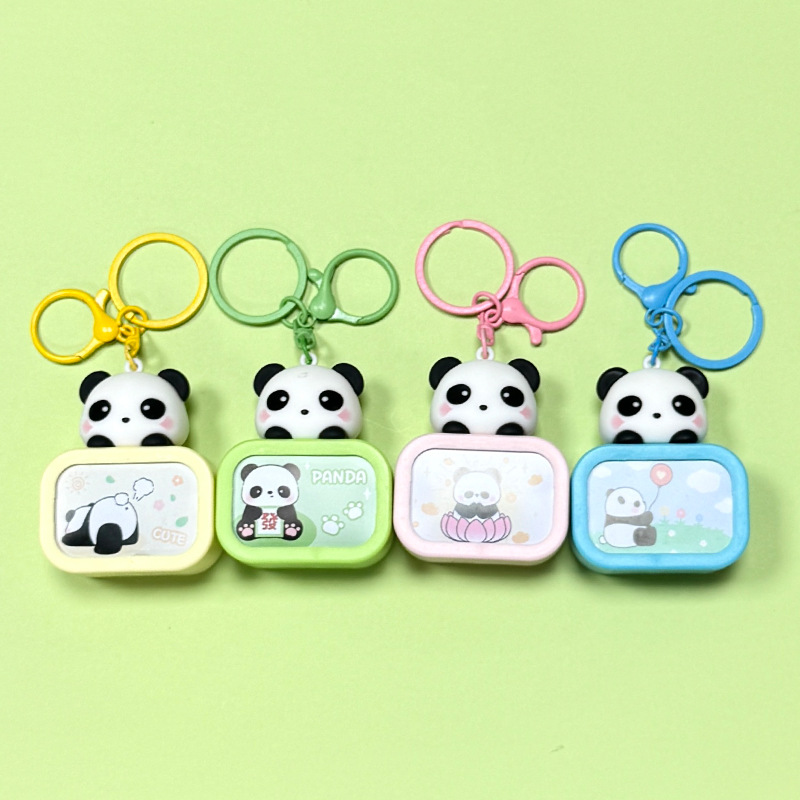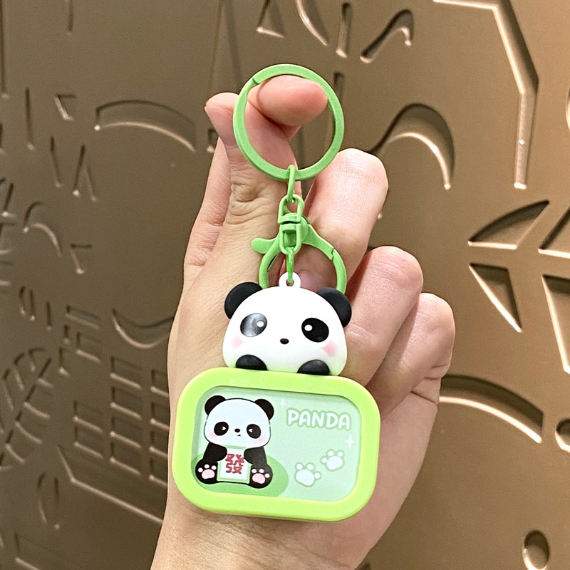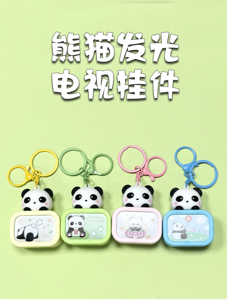 creative cartoon cute panda luminous night light tv keychain schoolbag pendant exquisite car key chain hanging ornament