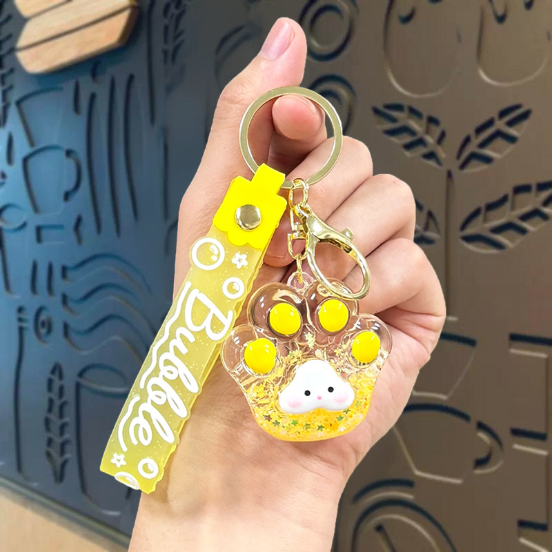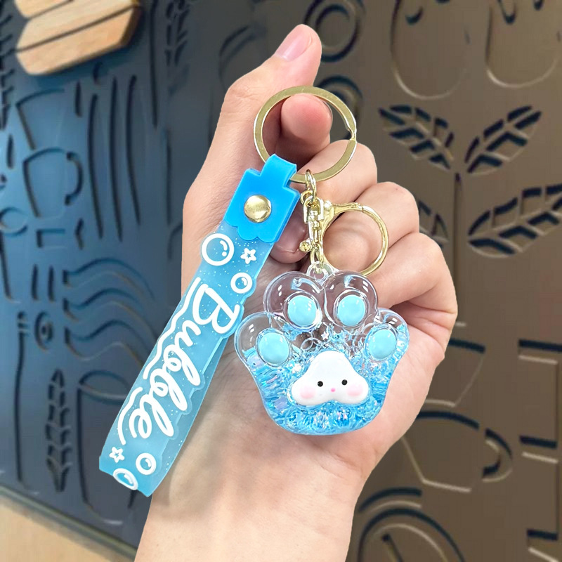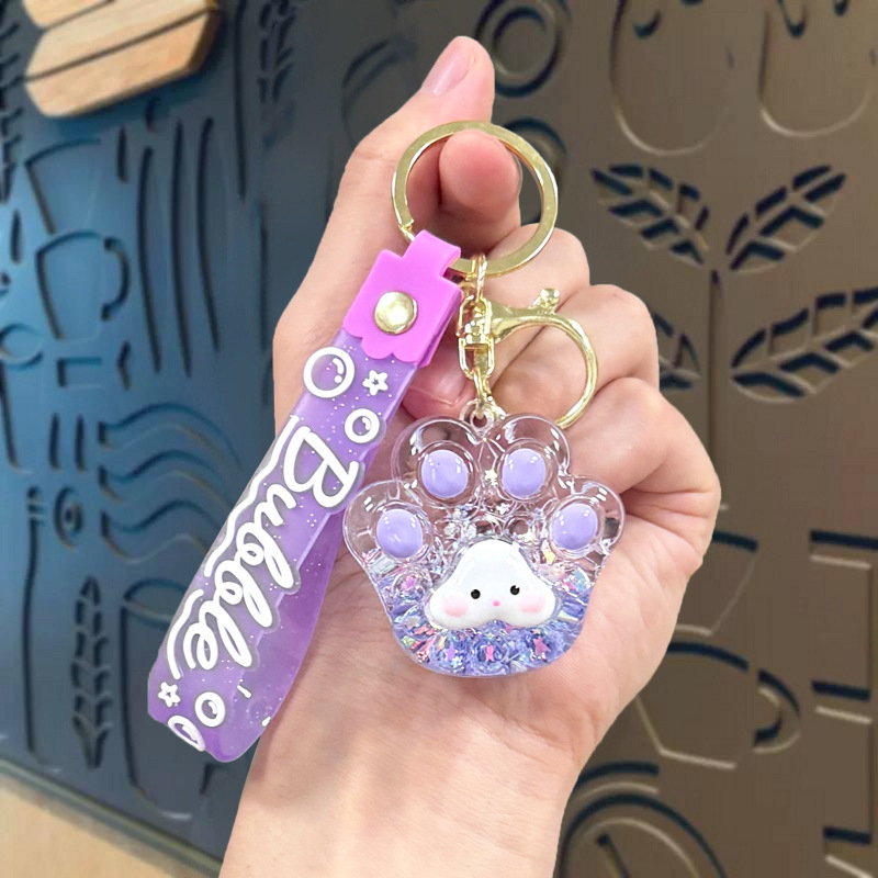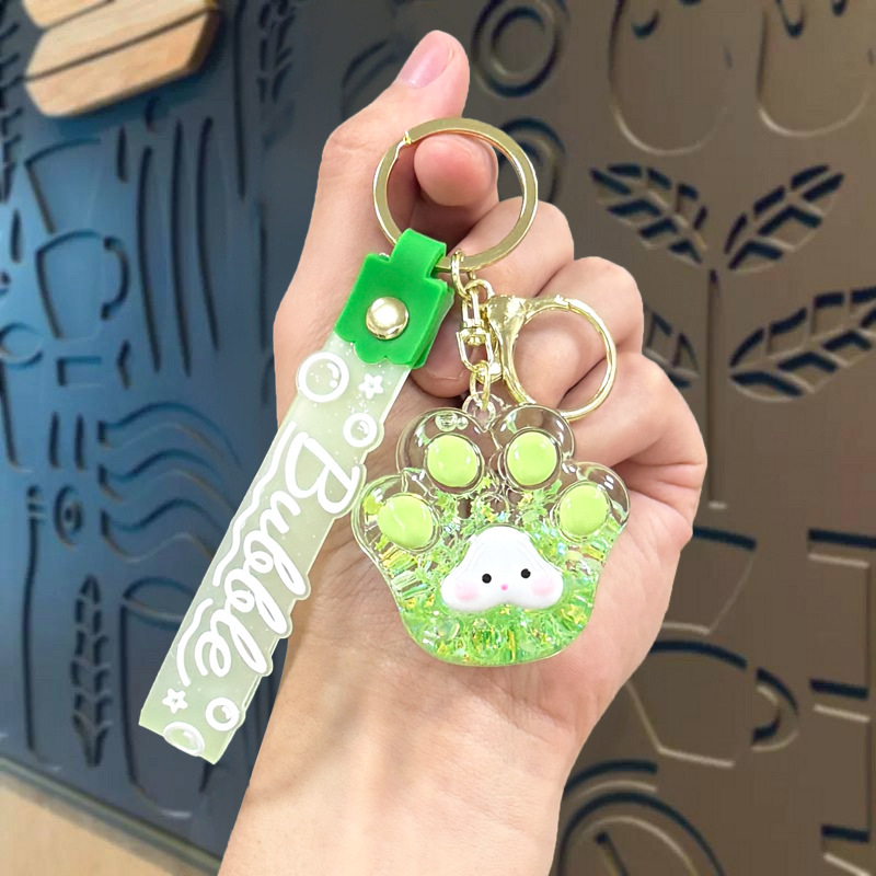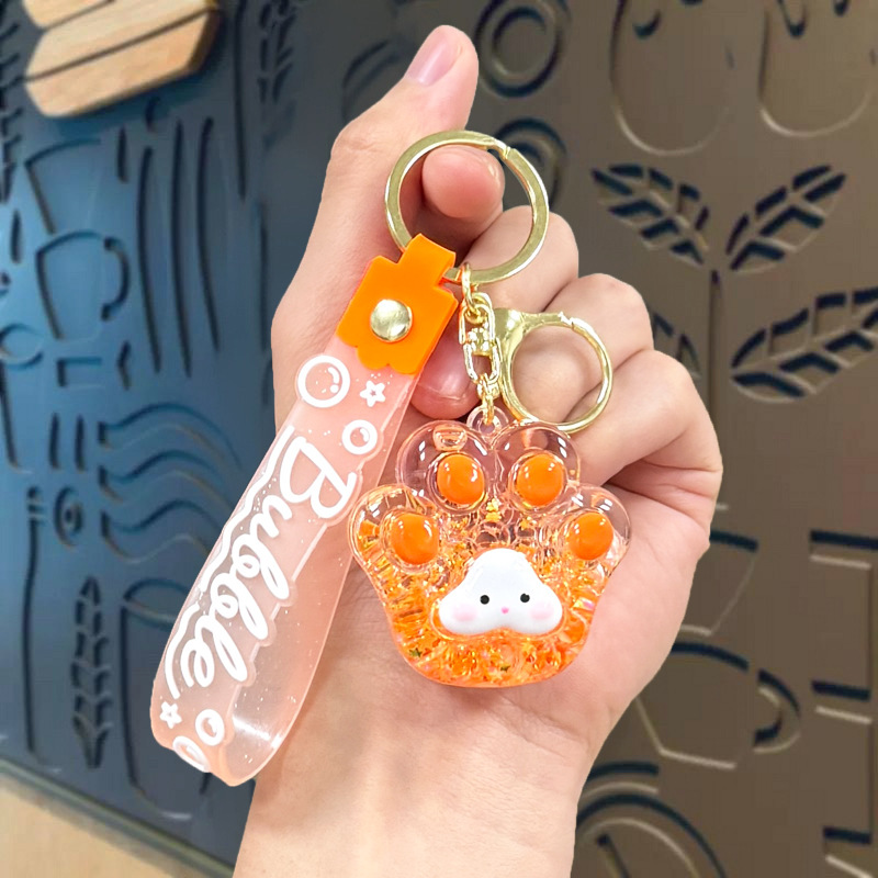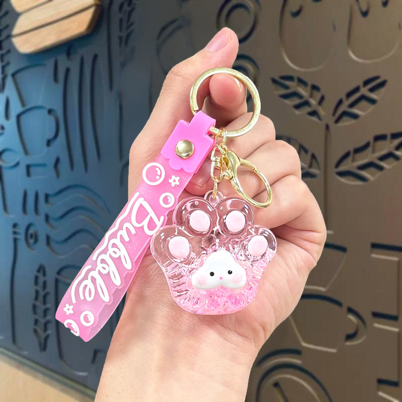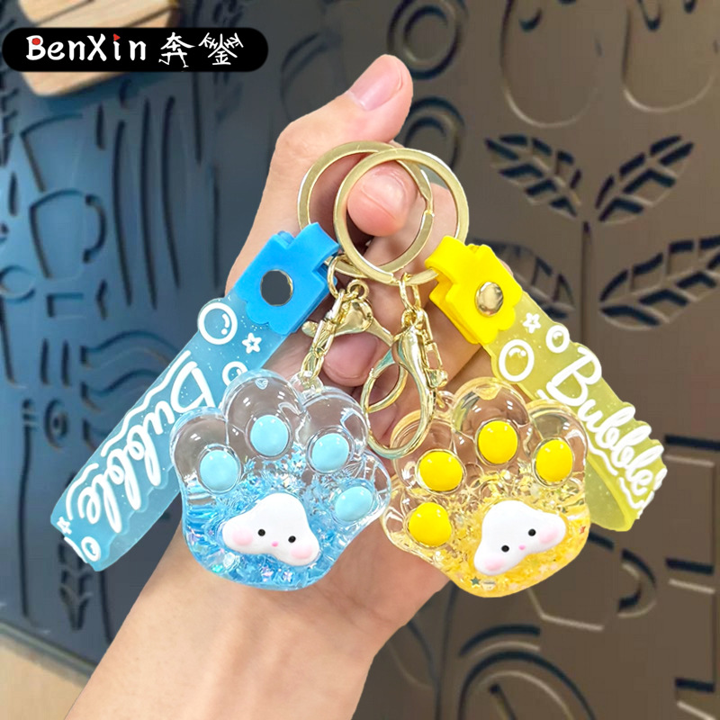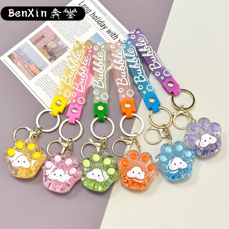 creative oil luminous bubble beads cat's paw keychain schoolbag pendant acrylic quicksand bottle key ring pendants wholesale