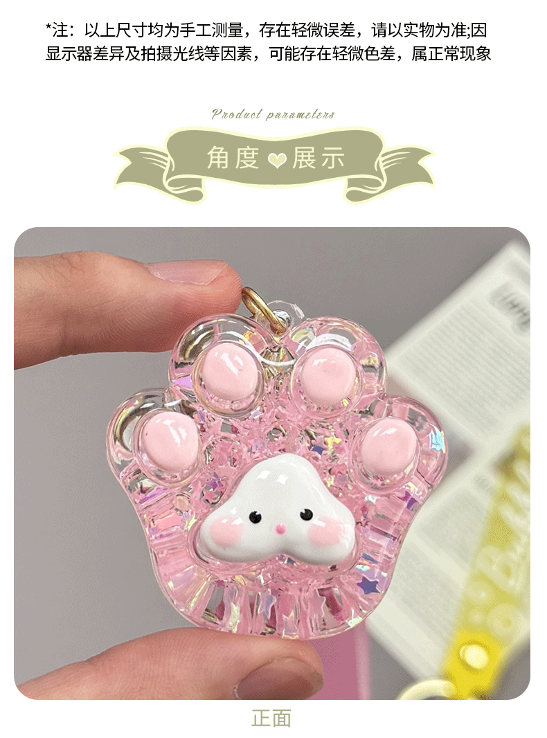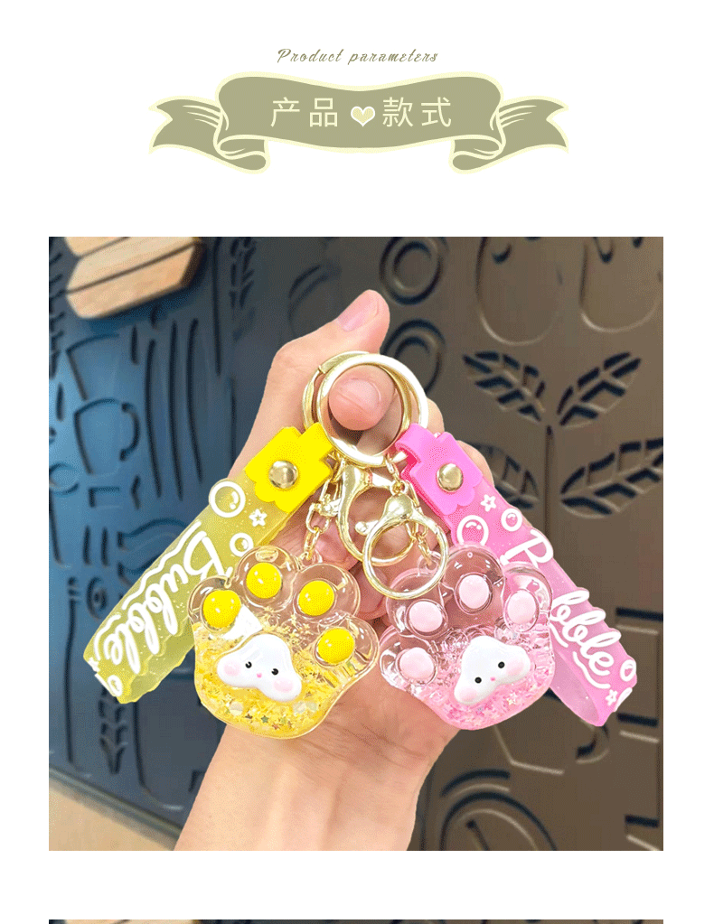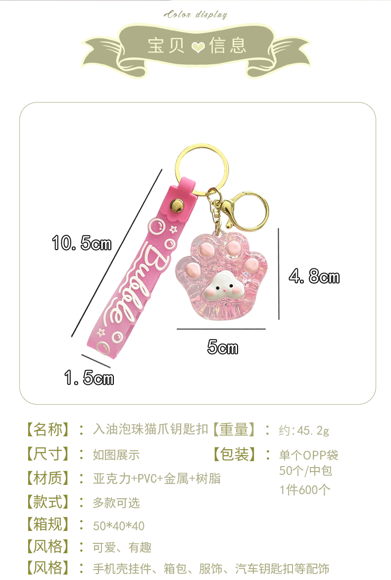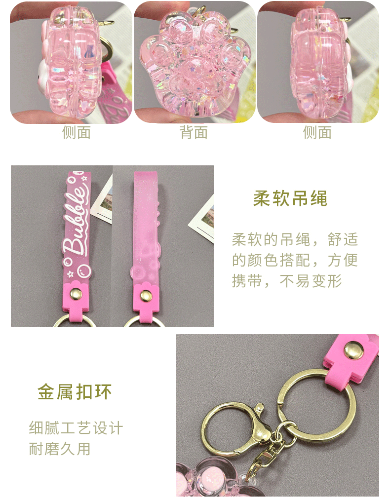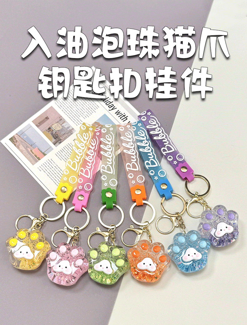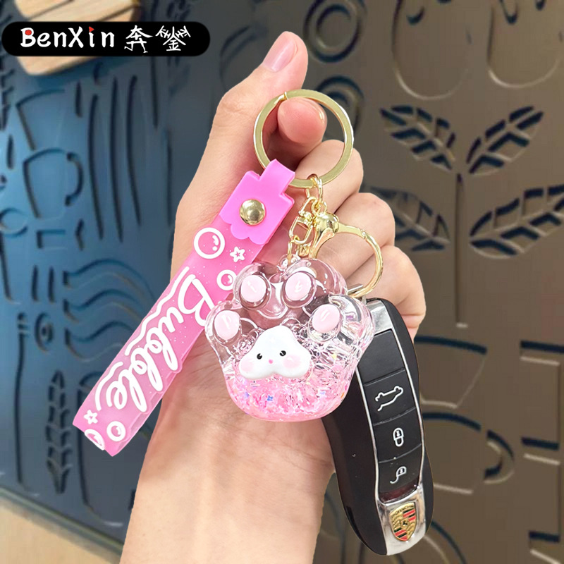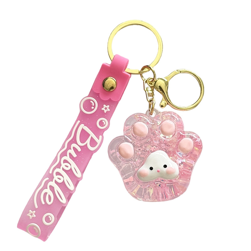 creative oil luminous bubble beads cat's paw keychain schoolbag pendant acrylic quicksand bottle key ring pendants wholesale