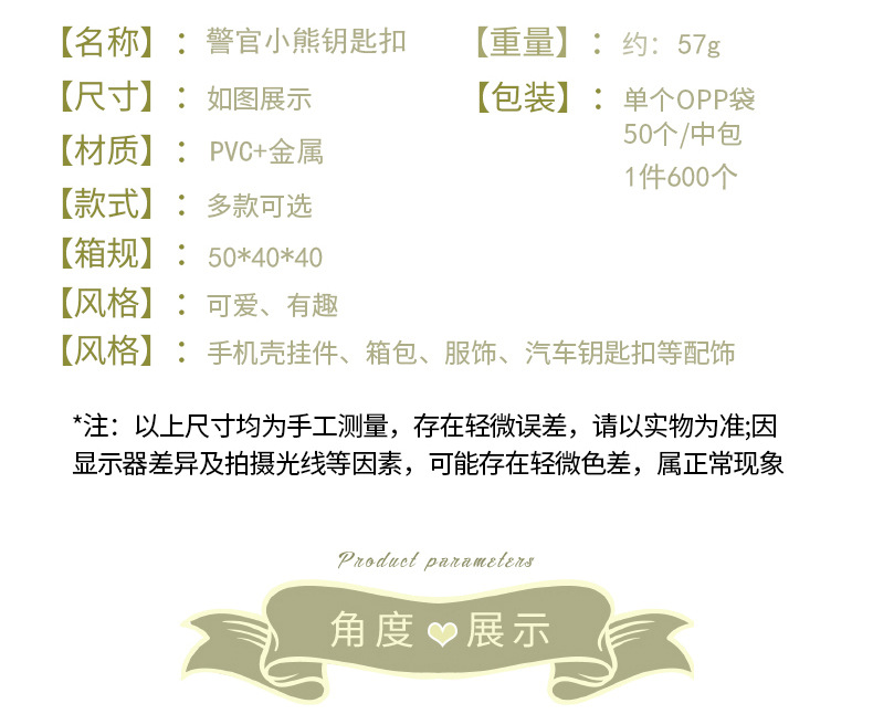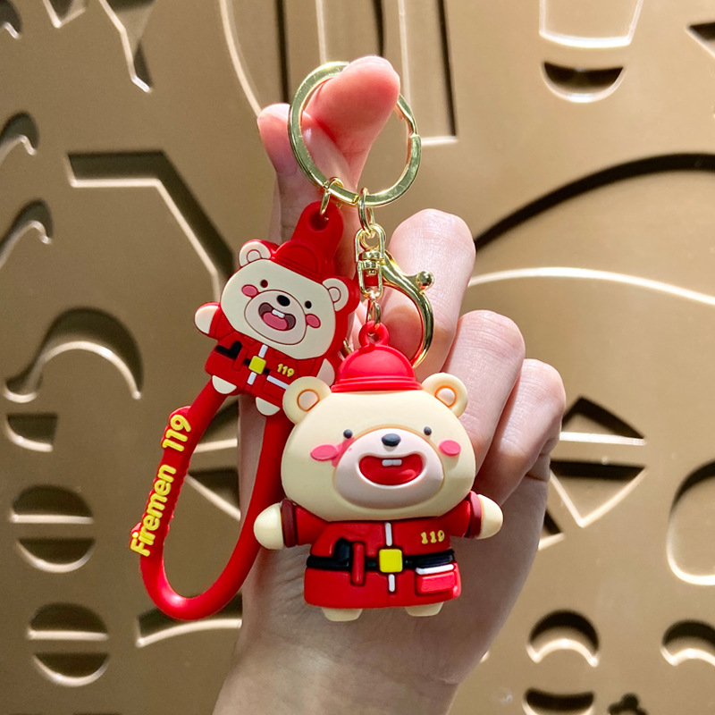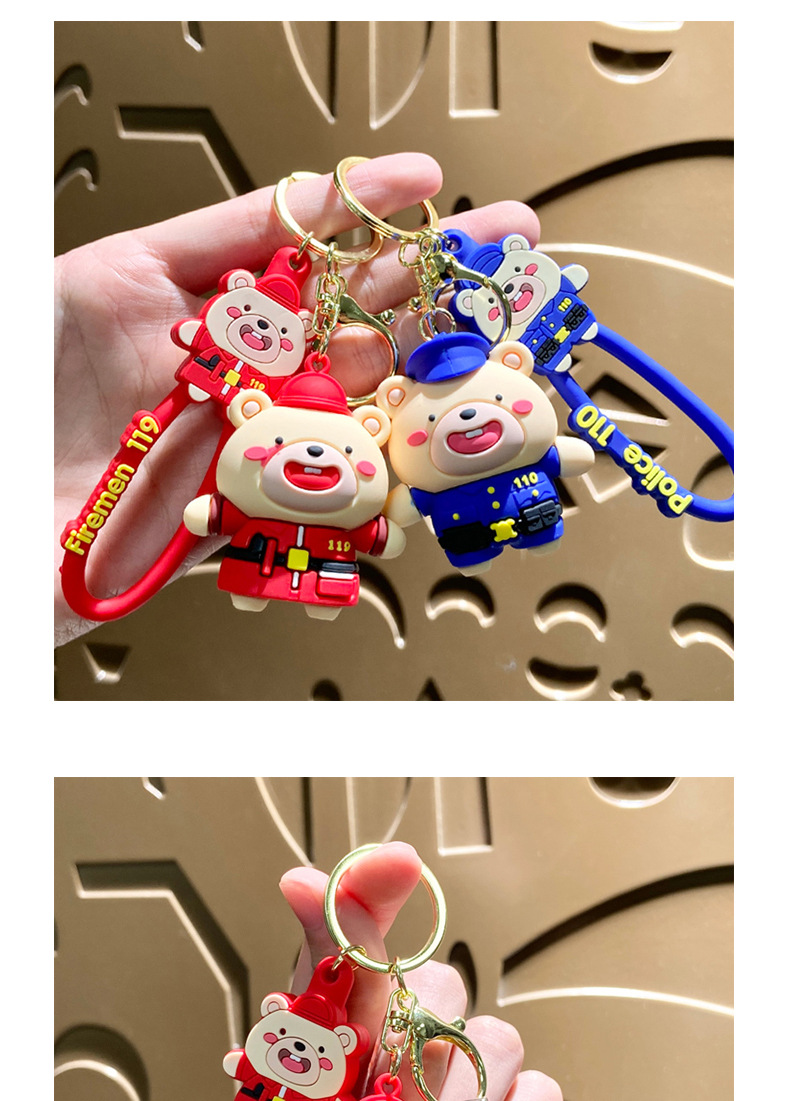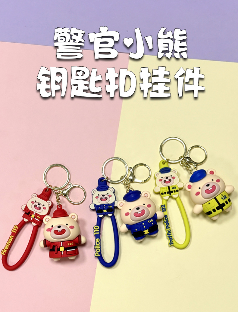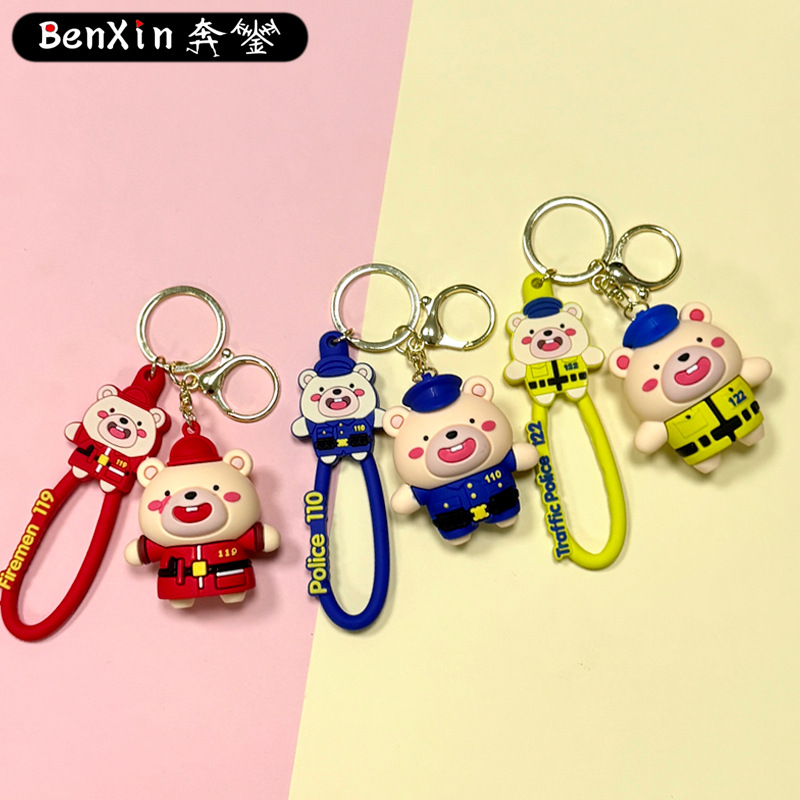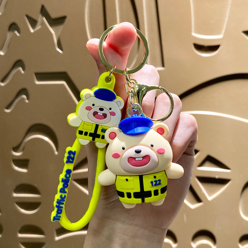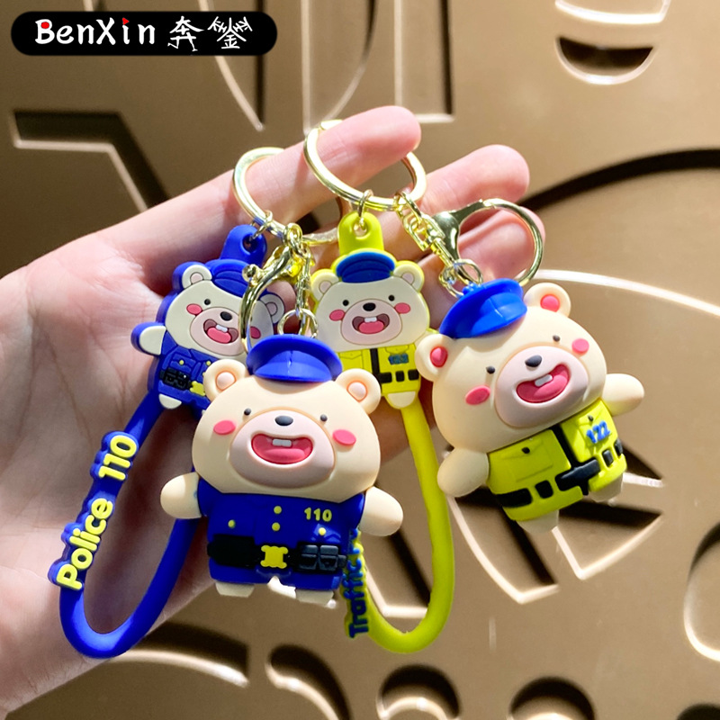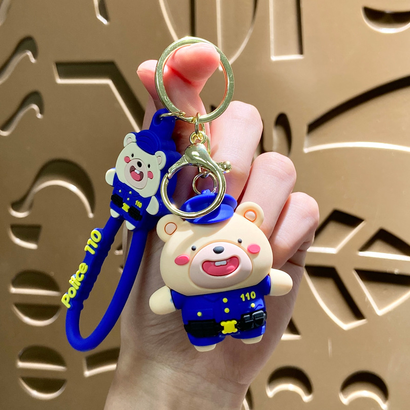 creative cute internet celebrity police officer bear keychain schoolbag pendant car key chain hanging decoration boutique gift wholesale