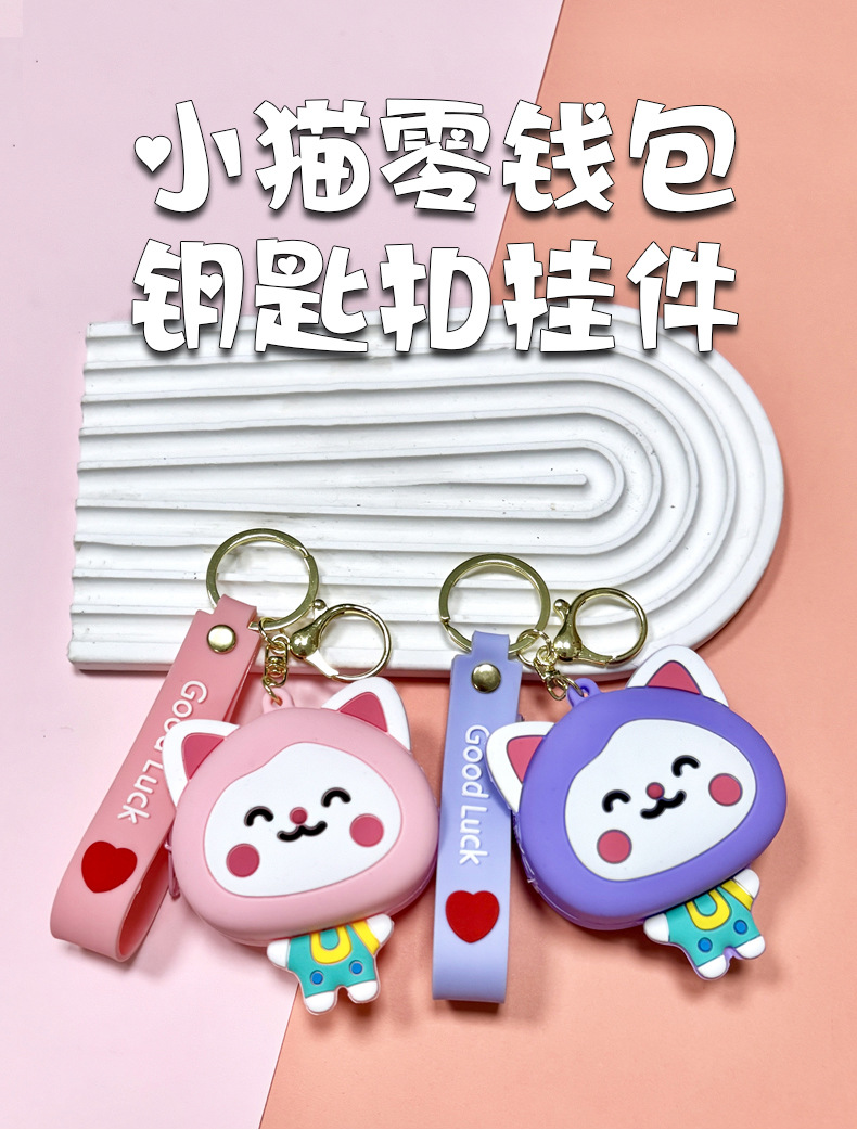 color: kitten coin purse-purple, kitten coin purse-pink