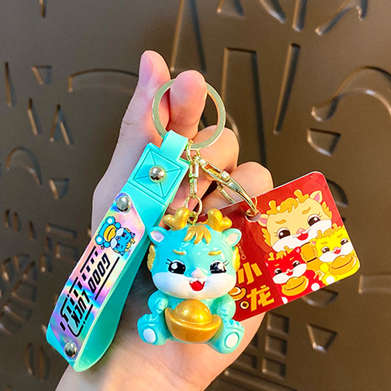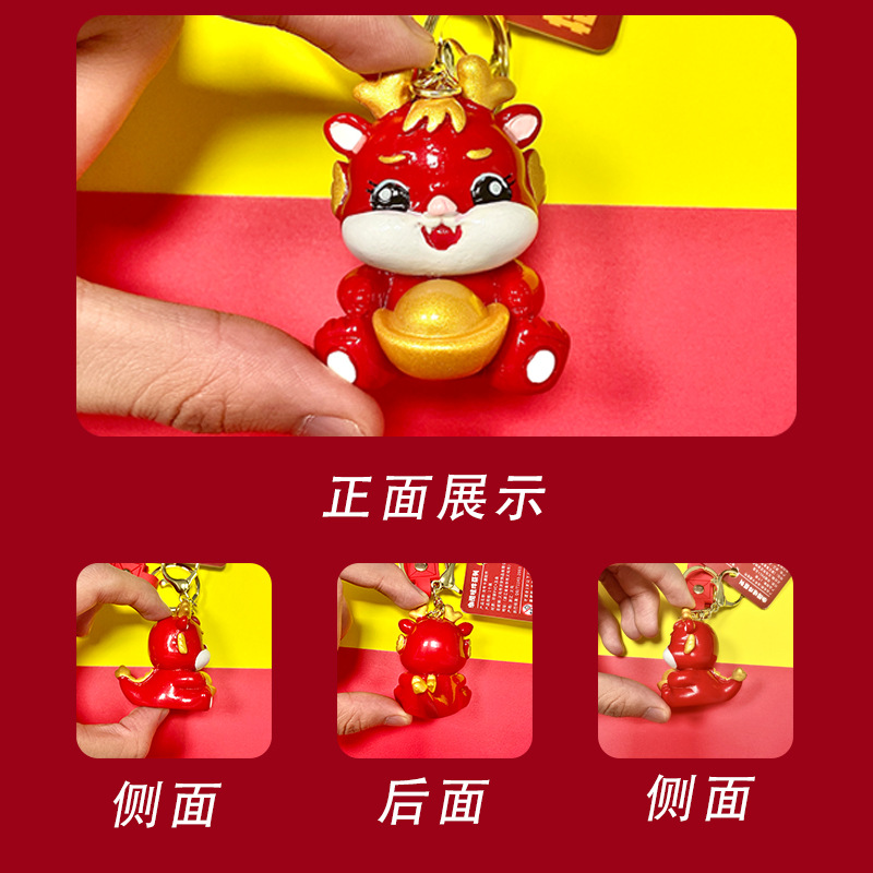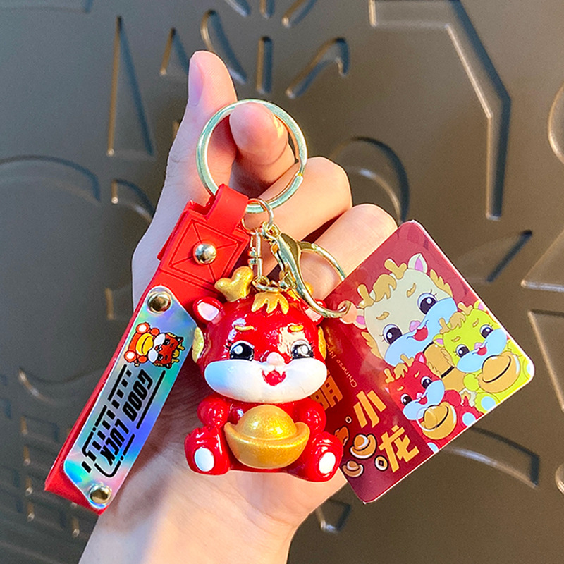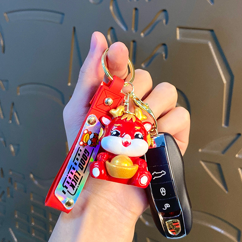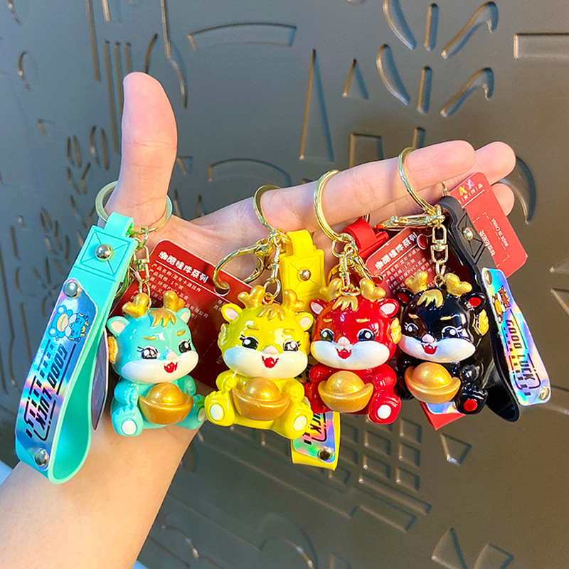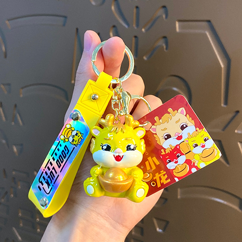 cartoon yuan baolong new year keychain creative cars and bags keychain pendant dragon year small gift ornaments wholesale