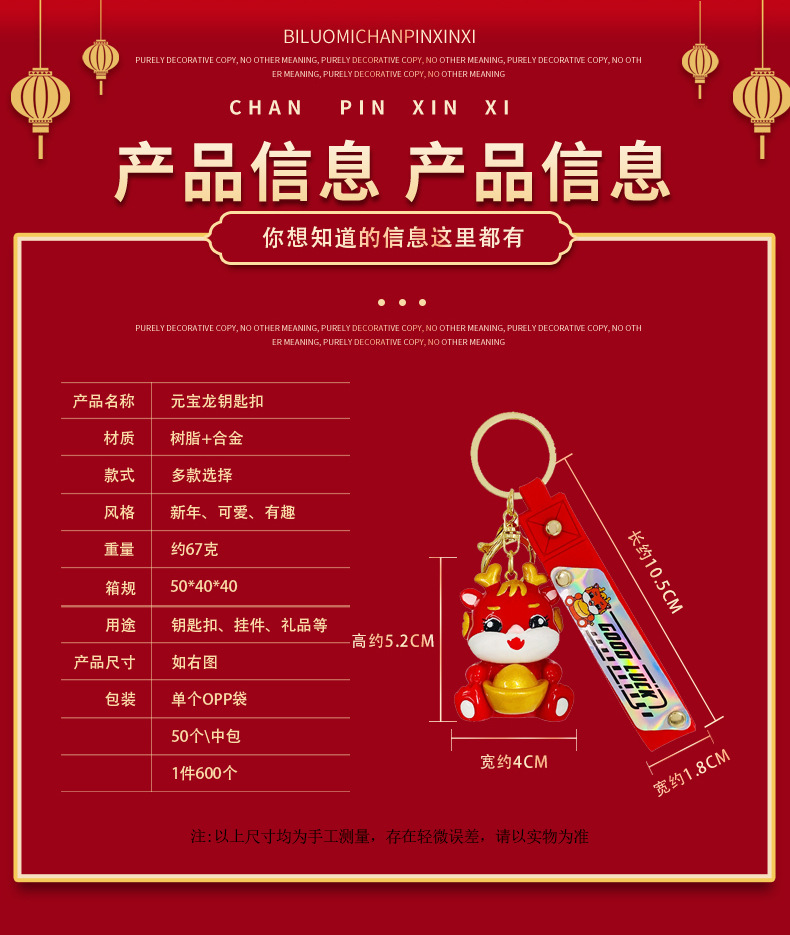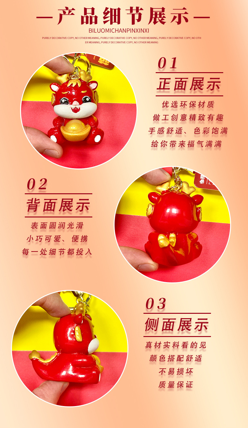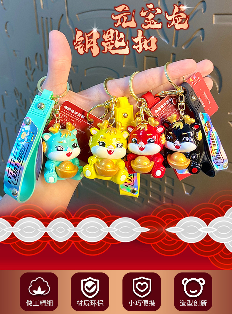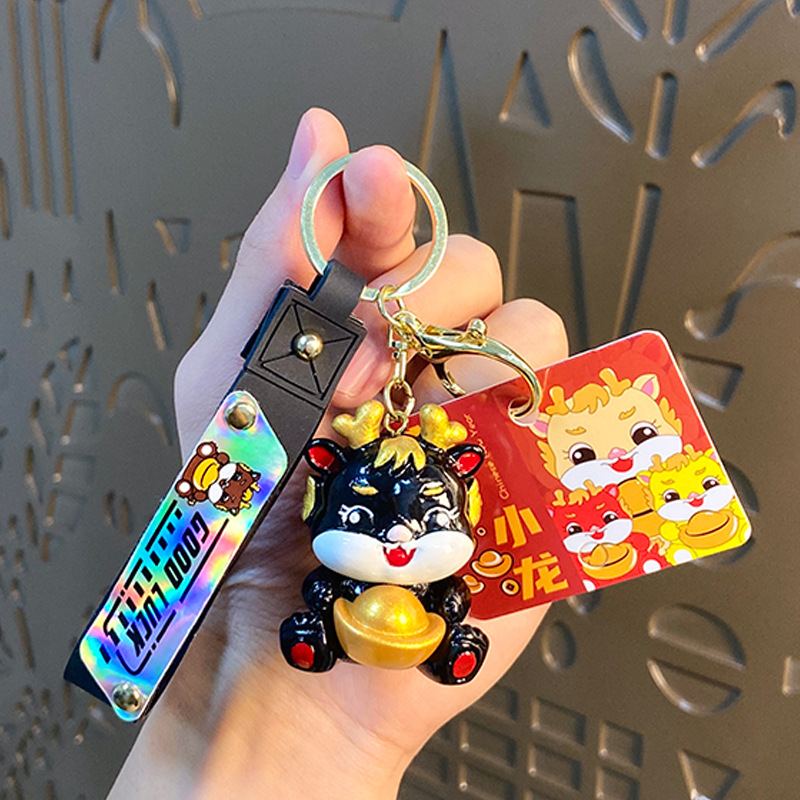 cartoon yuan baolong new year keychain creative cars and bags keychain pendant dragon year small gift ornaments wholesale