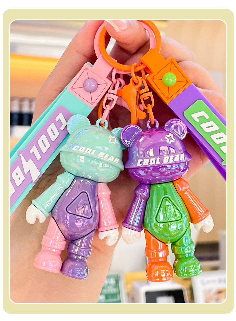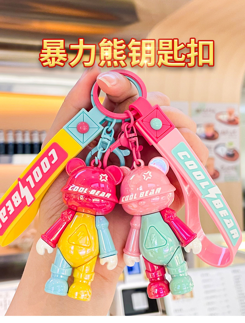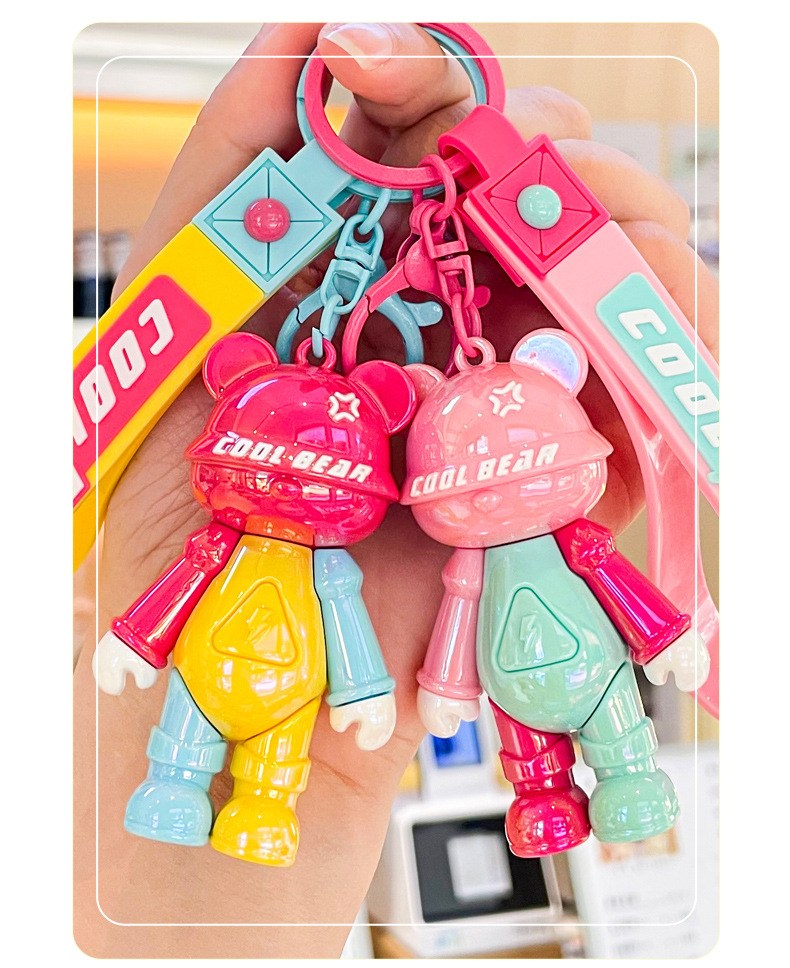 color matching cool bear doll keychain automobile hanging ornament exquisite couple bags key ring pendants small gift wholesale
