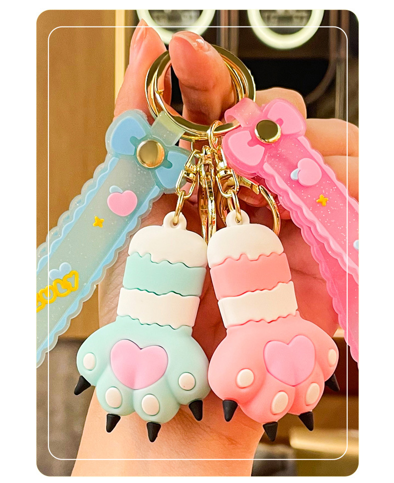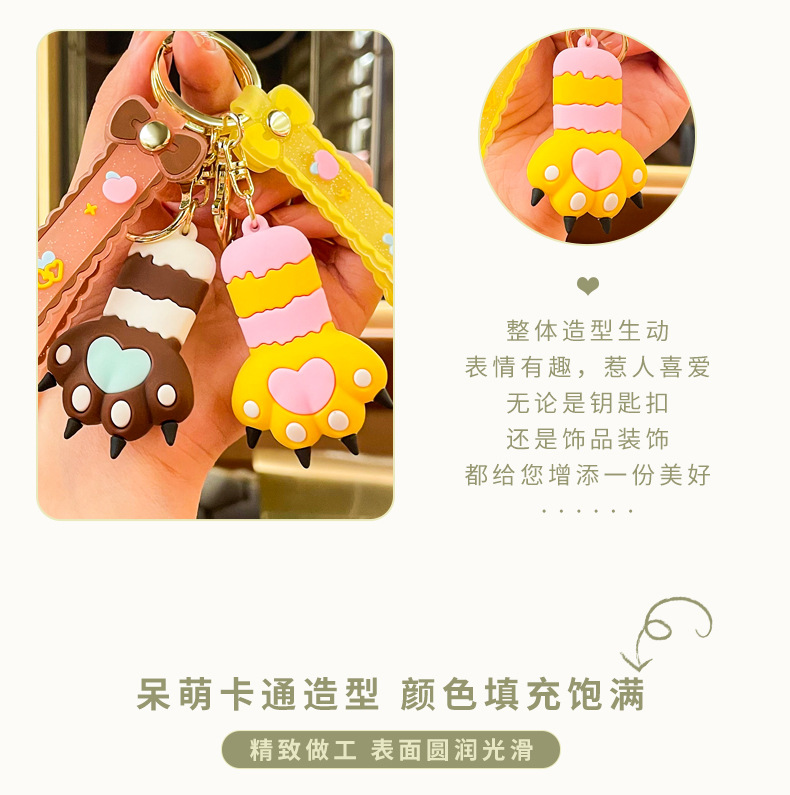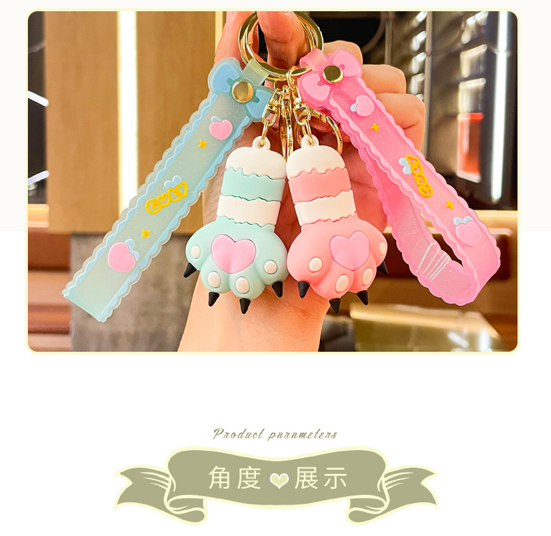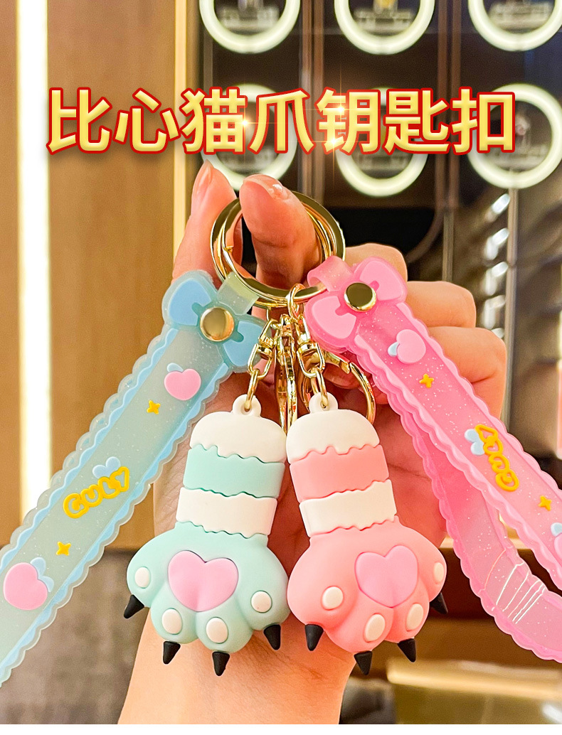 cute heart cat's paw keychain automobile hanging ornament exquisite bag accessories key chain ring ornaments small gifts wholesale