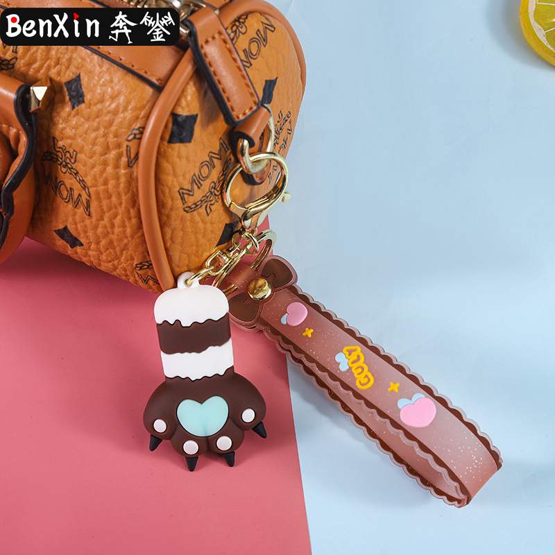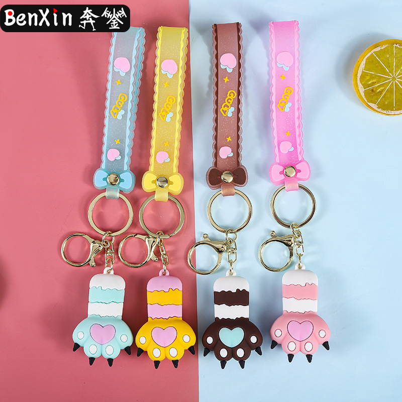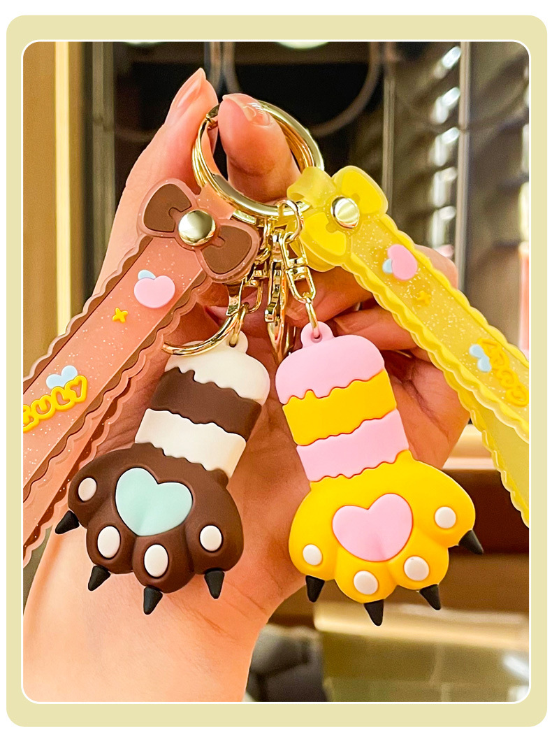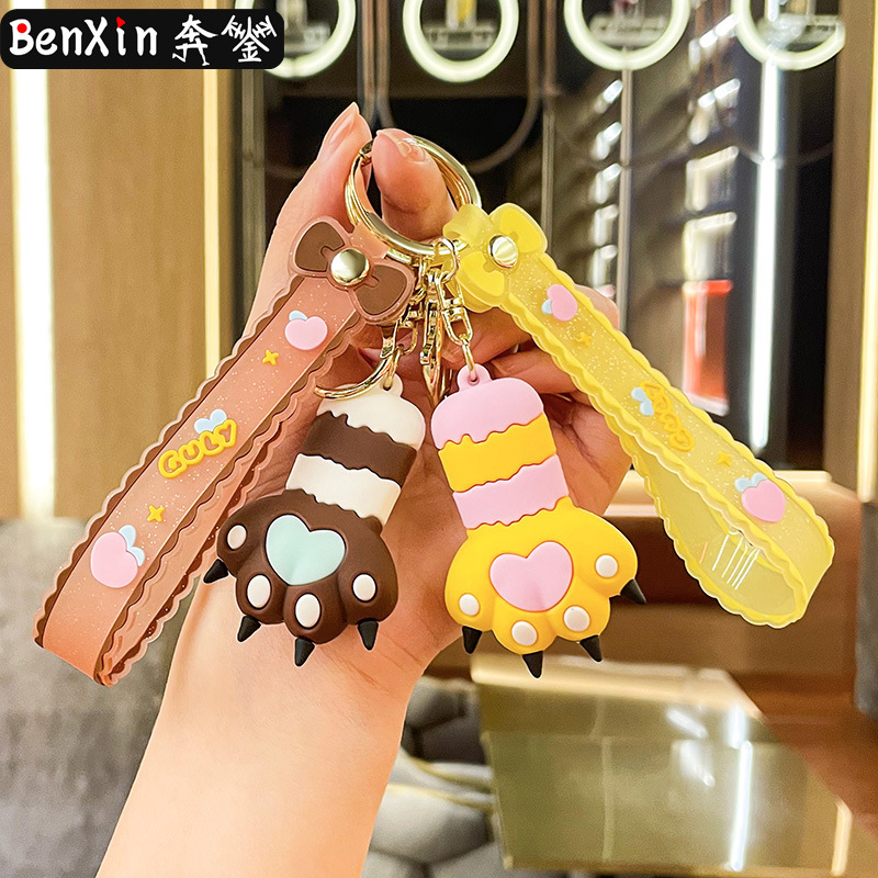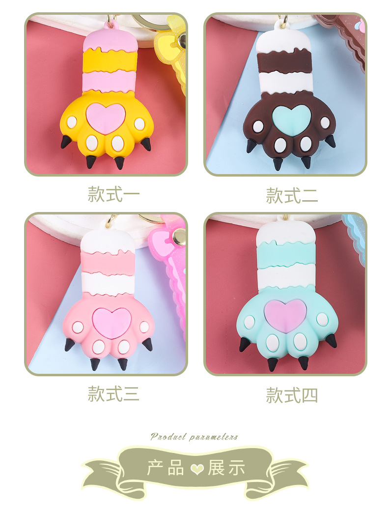 cute heart cat's paw keychain automobile hanging ornament exquisite bag accessories key chain ring ornaments small gifts wholesale