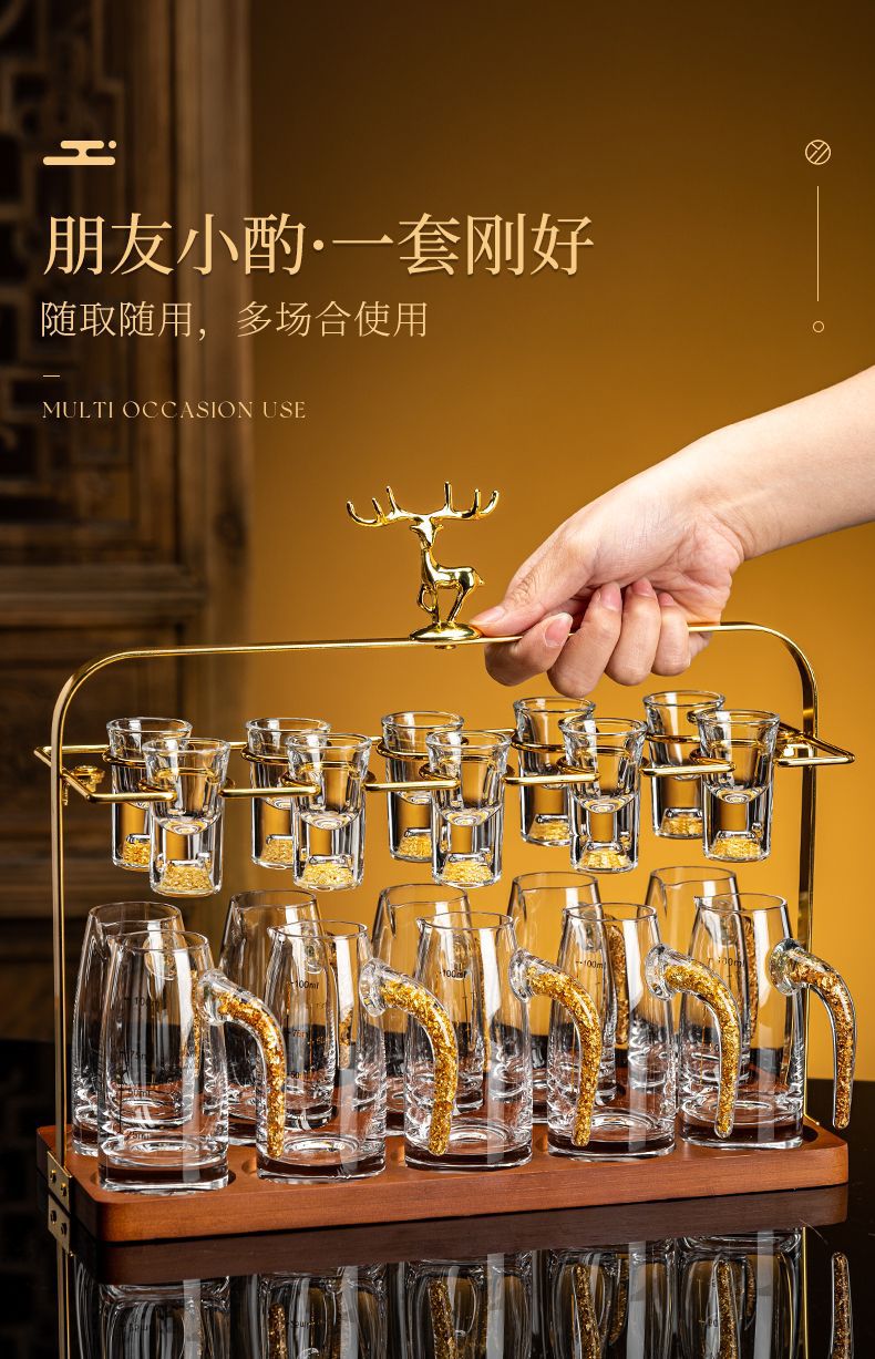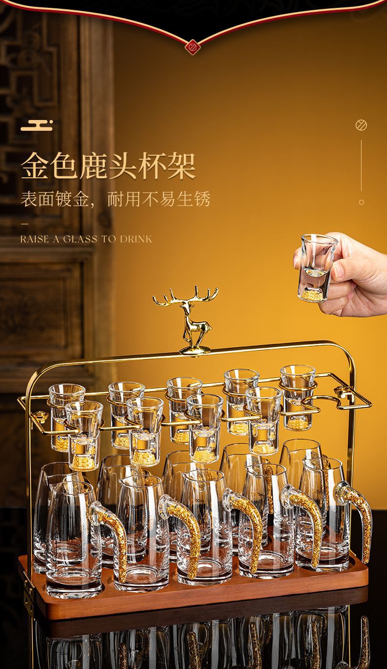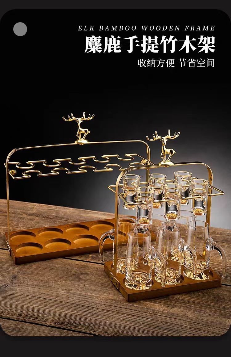 白酒杯分酒器架子创意轻奢酒杯架一口杯鹿头酒架酒具精致水杯杯架