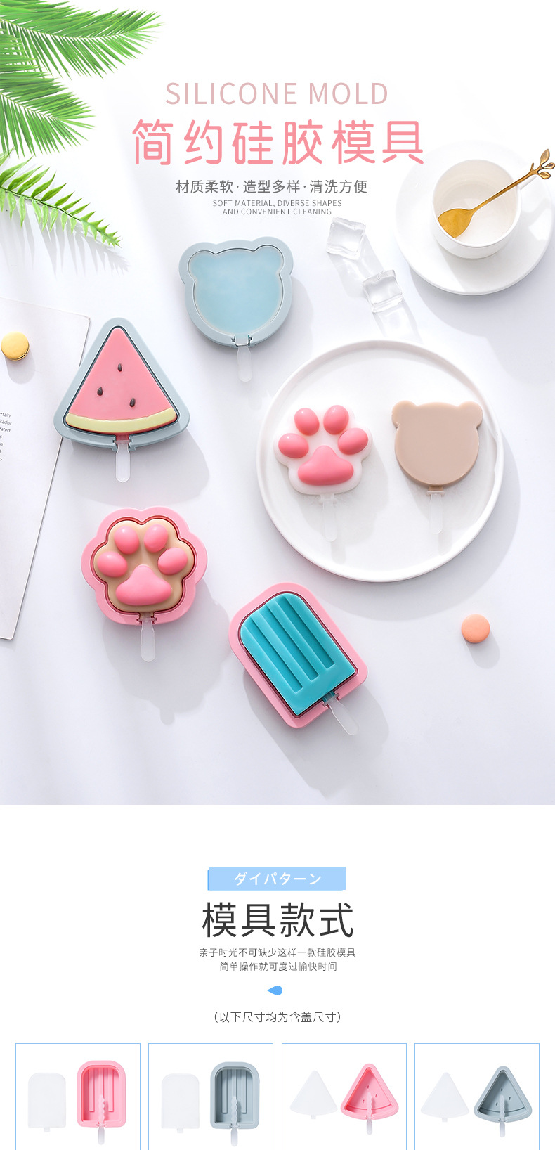 尺寸:简约冰棍11*8.1*2.5cm 西瓜11.5*11*2.7cm 猫爪10.5*9.8*3.5cm 小熊9.8*9.2*2.5cm