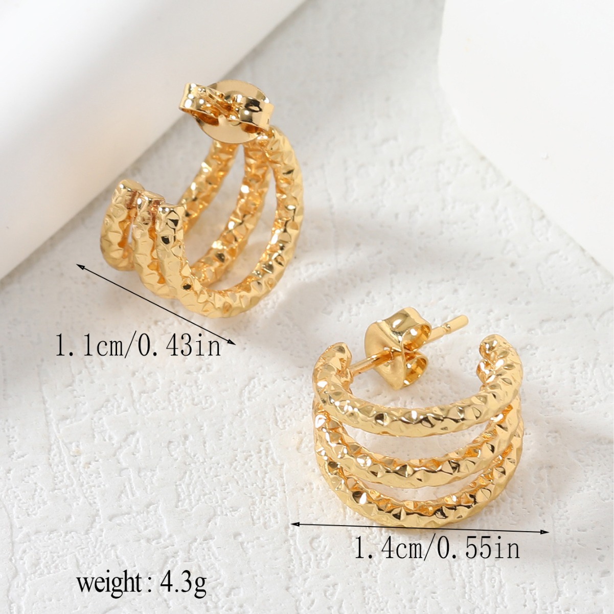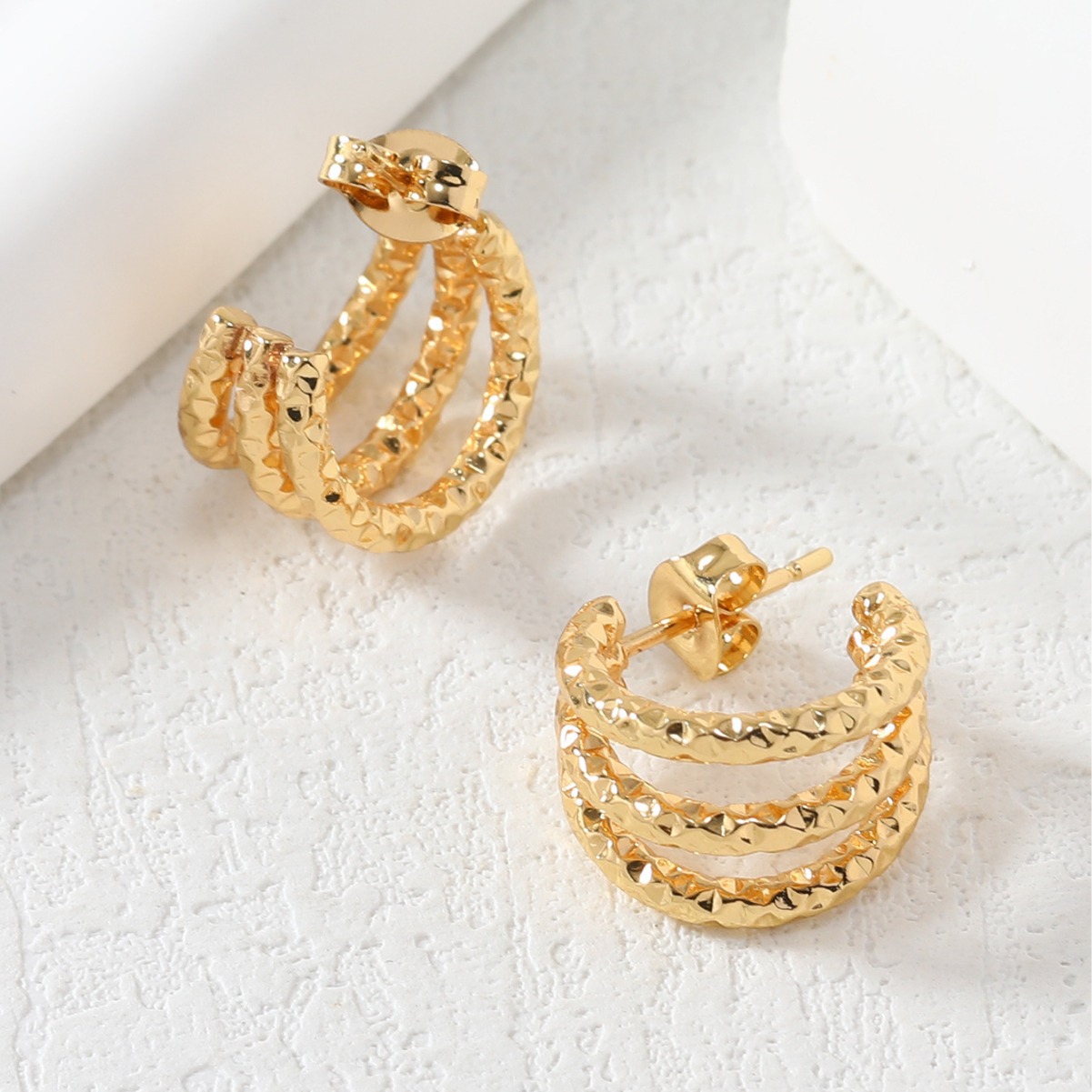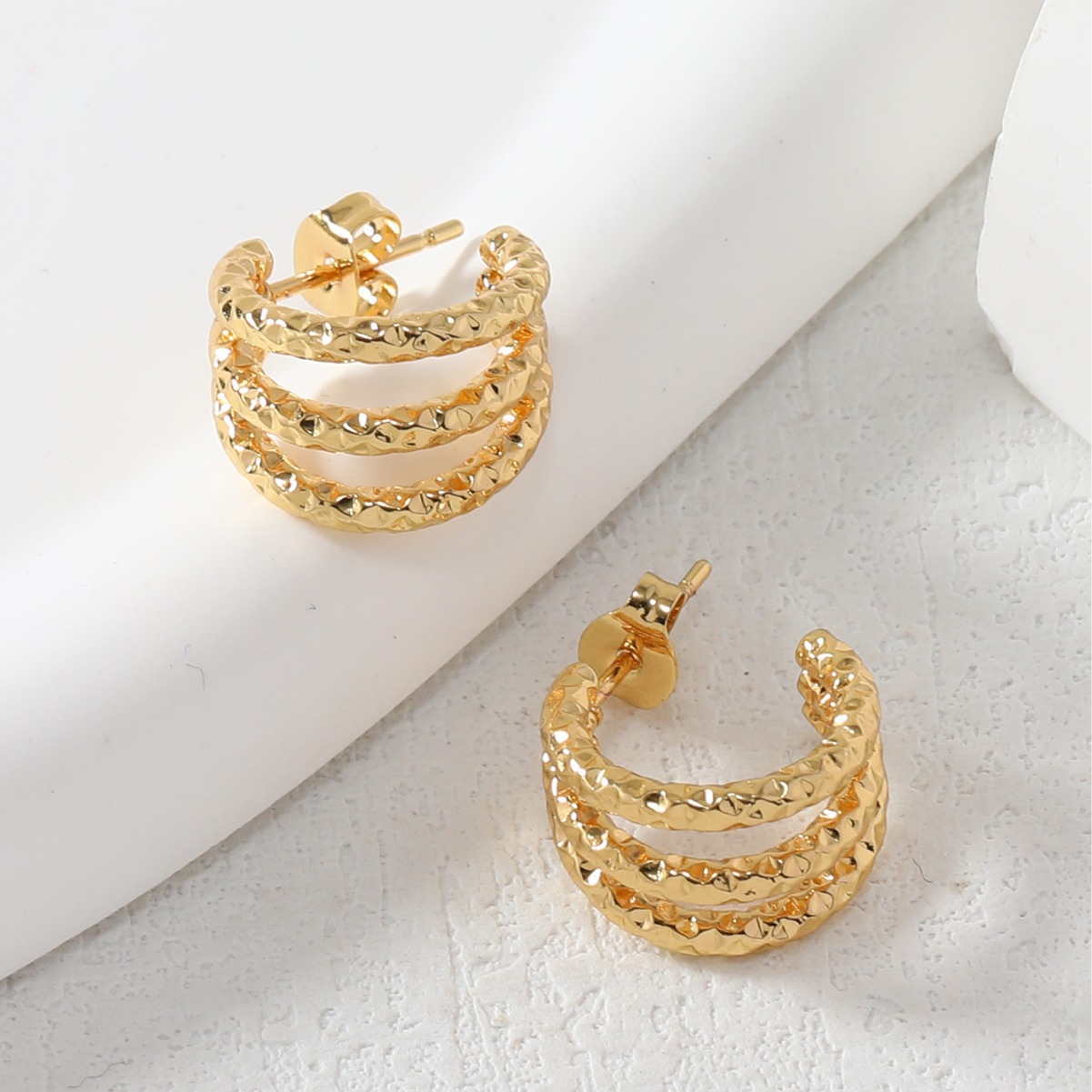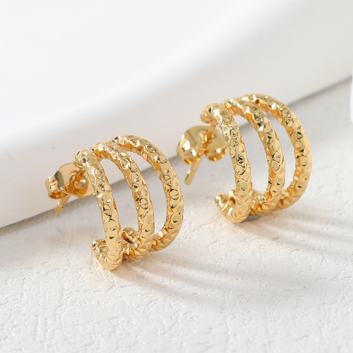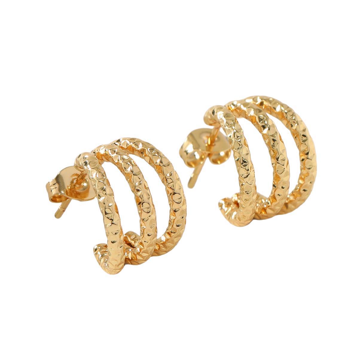 Fashion New Cross-border European and American Style C-shaped Design Sense Texture Titanium Steel Earrings Individual Trendy Three-layer Stainless Steel Earrings