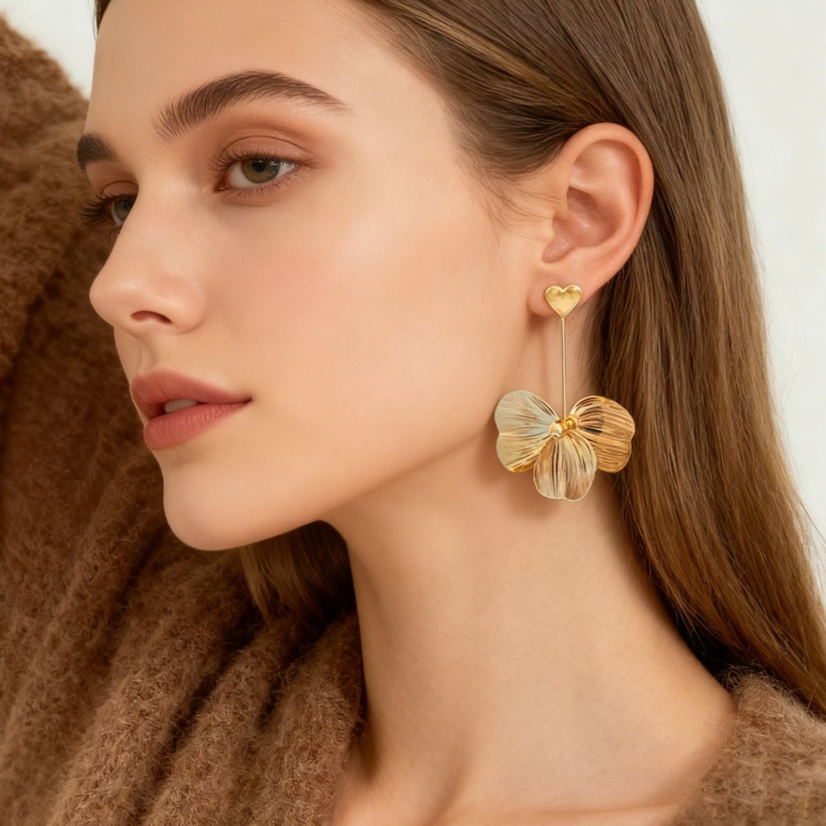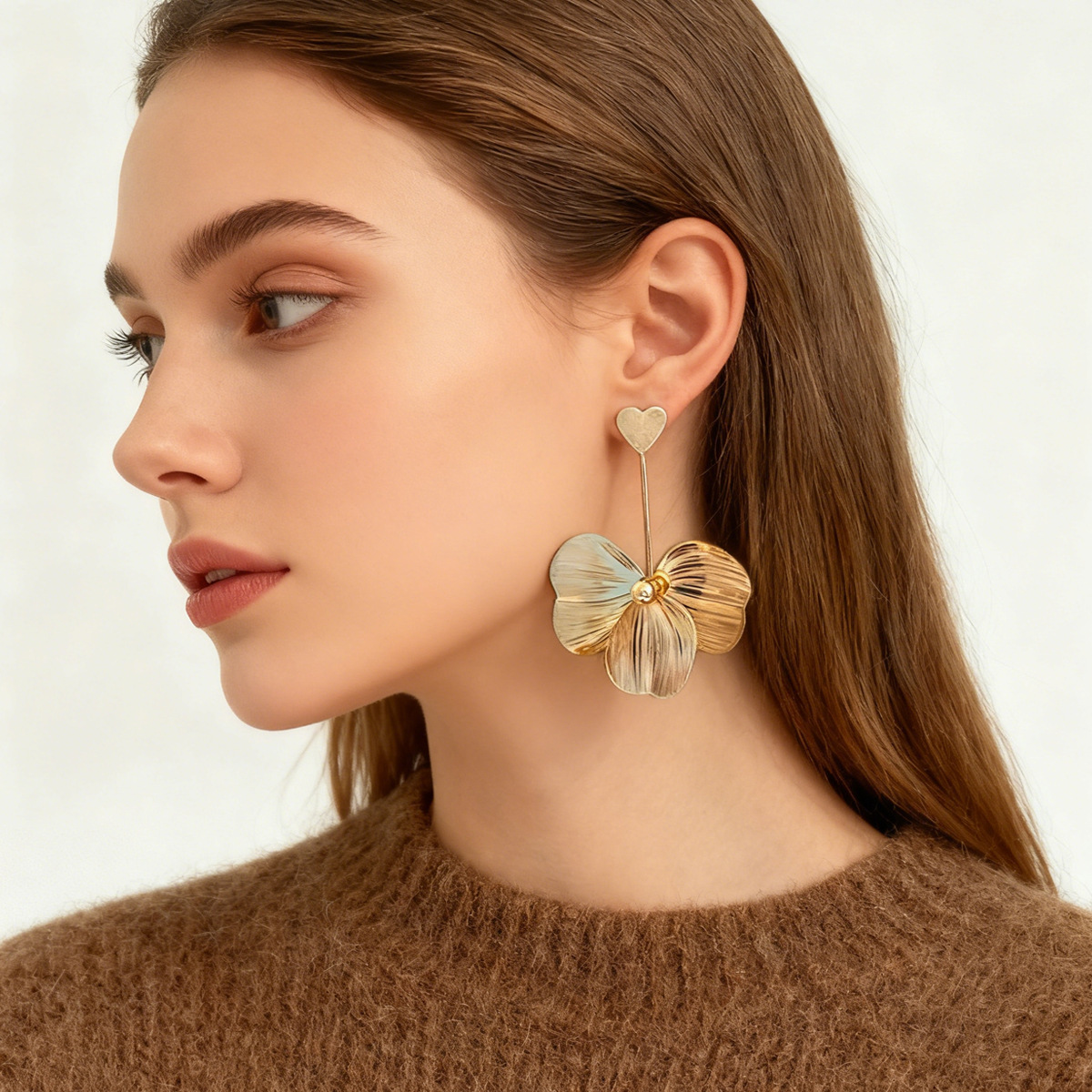 Cross-border European and American exaggerated earrings, vintage flower earrings, French fashion temperament, flowered ear drops, light luxury love earring