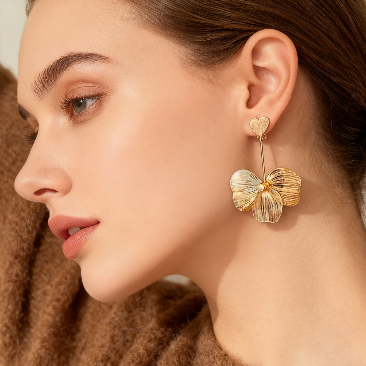 cross-border european and american high-profile earrings, vintage flower earrings, french fashion elegant tassel earrings, light luxury heart-shaped earrings