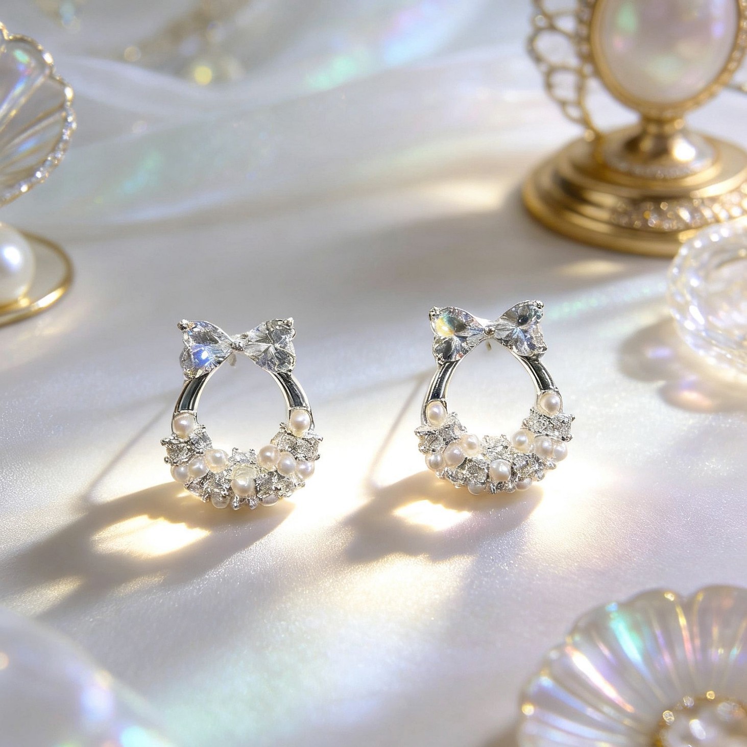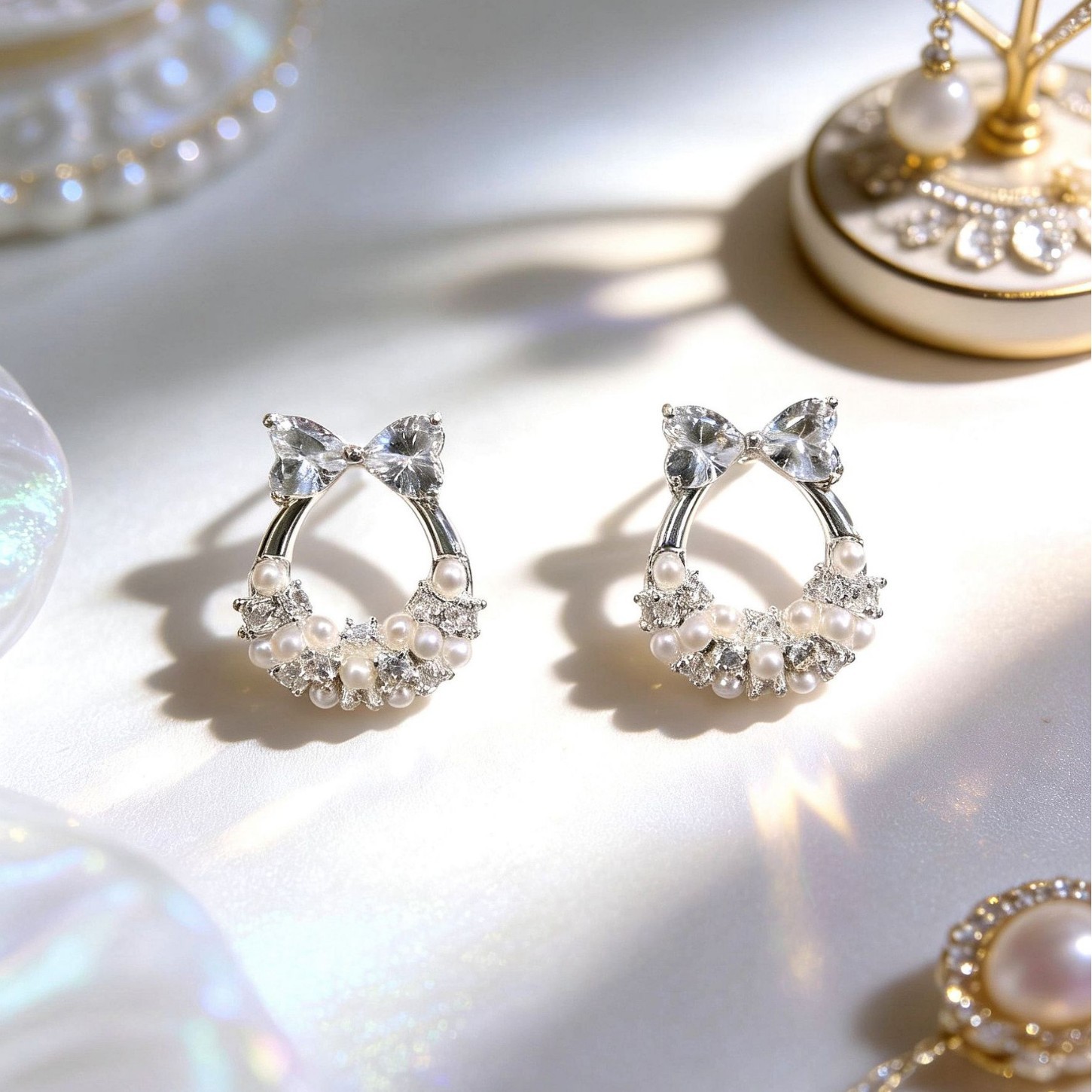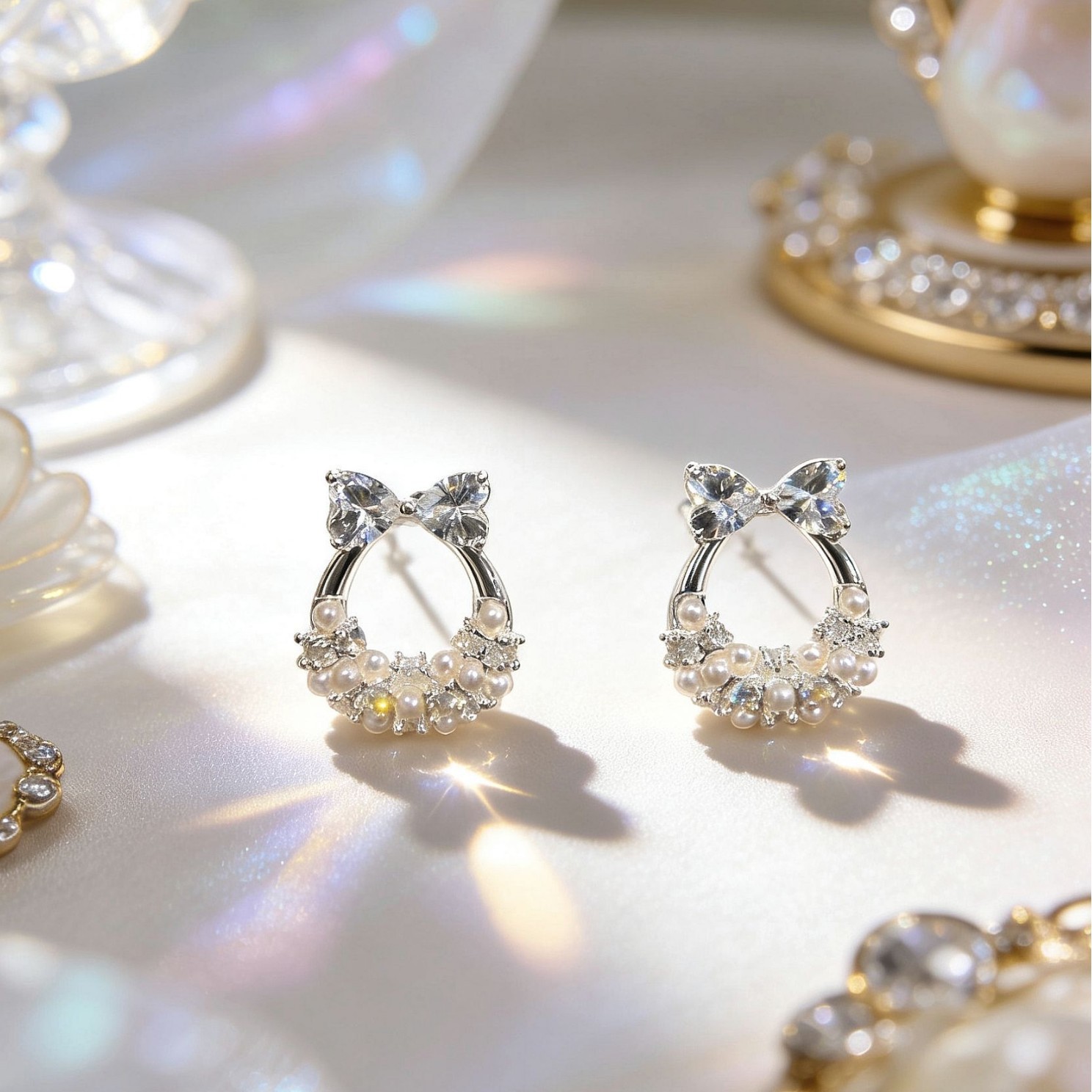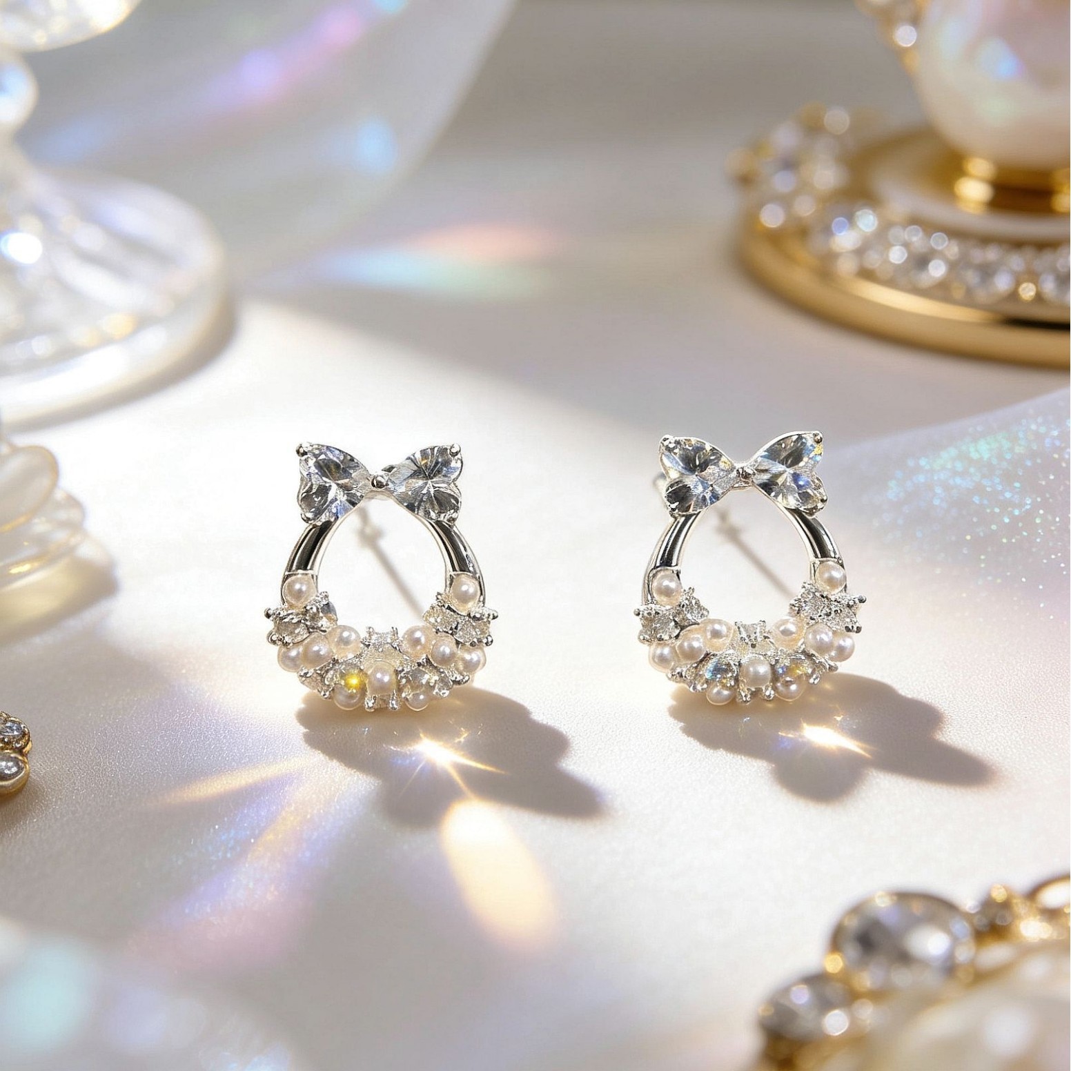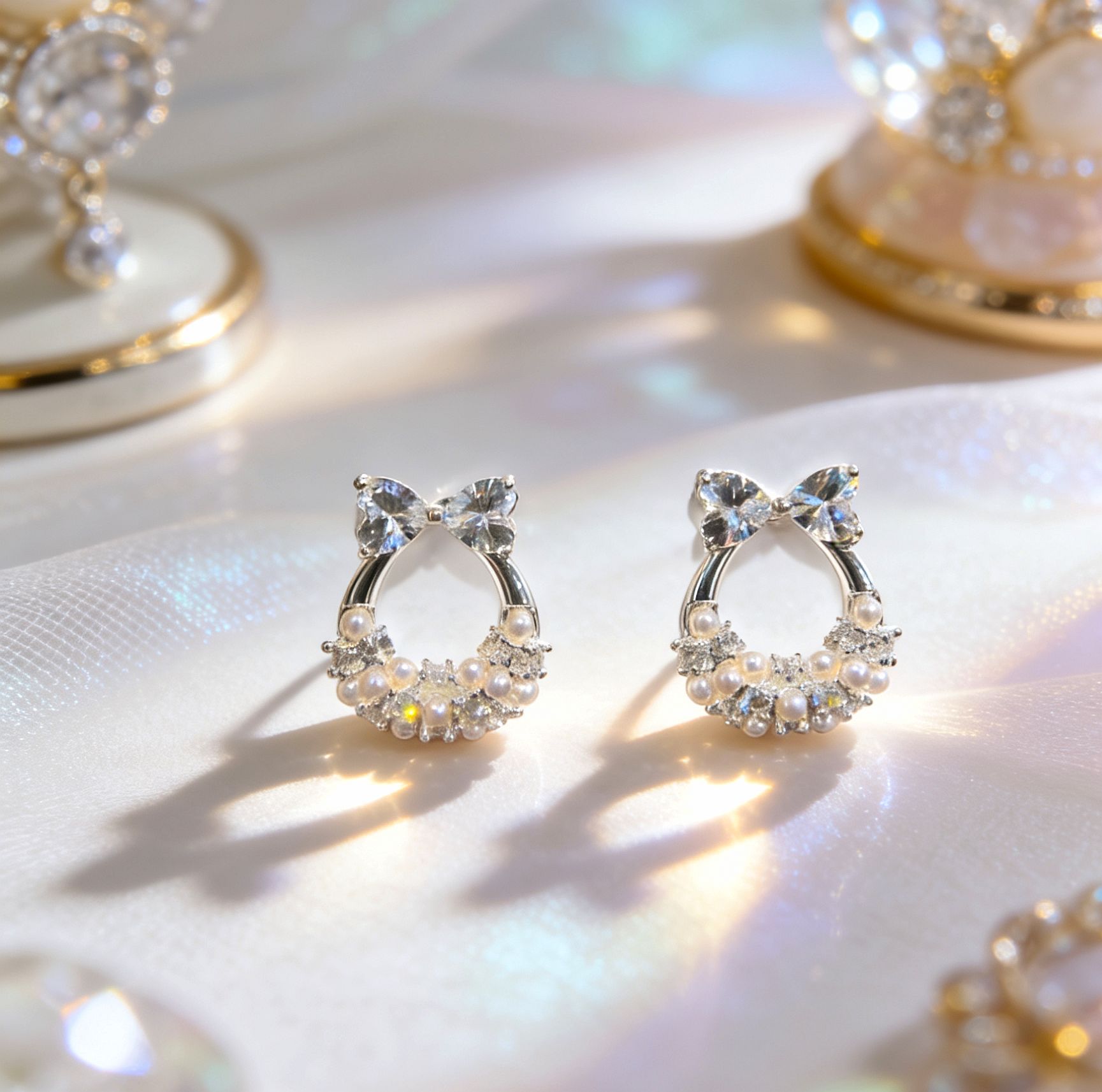 bowknot kitten head ear studs