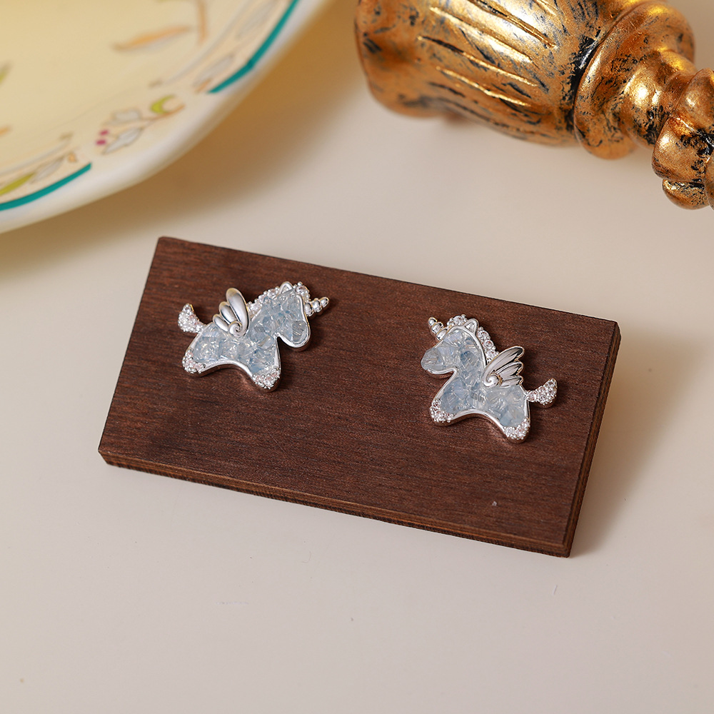 blue unicorn stud earrings