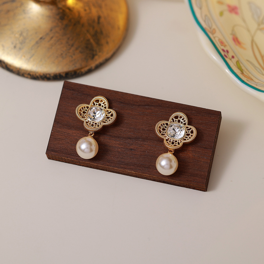golden clover pearl eardrops stud earrings
