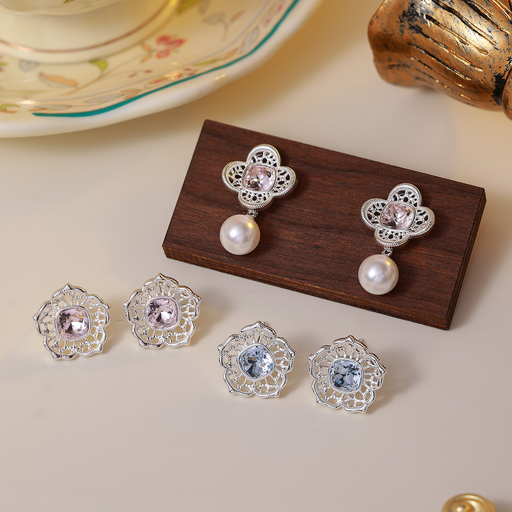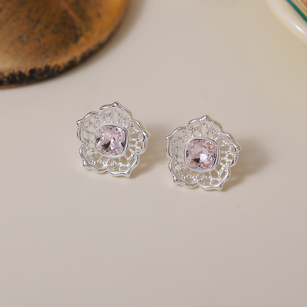 pink zircon flower ear studs