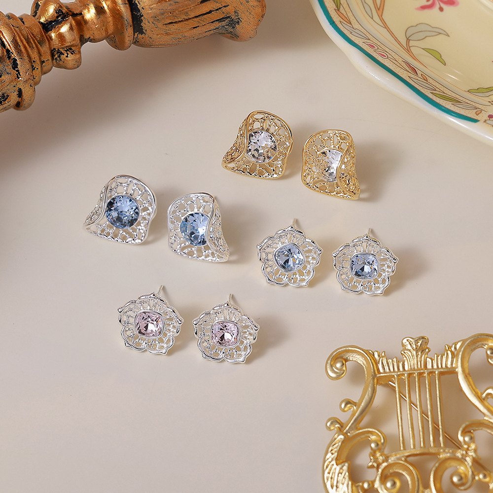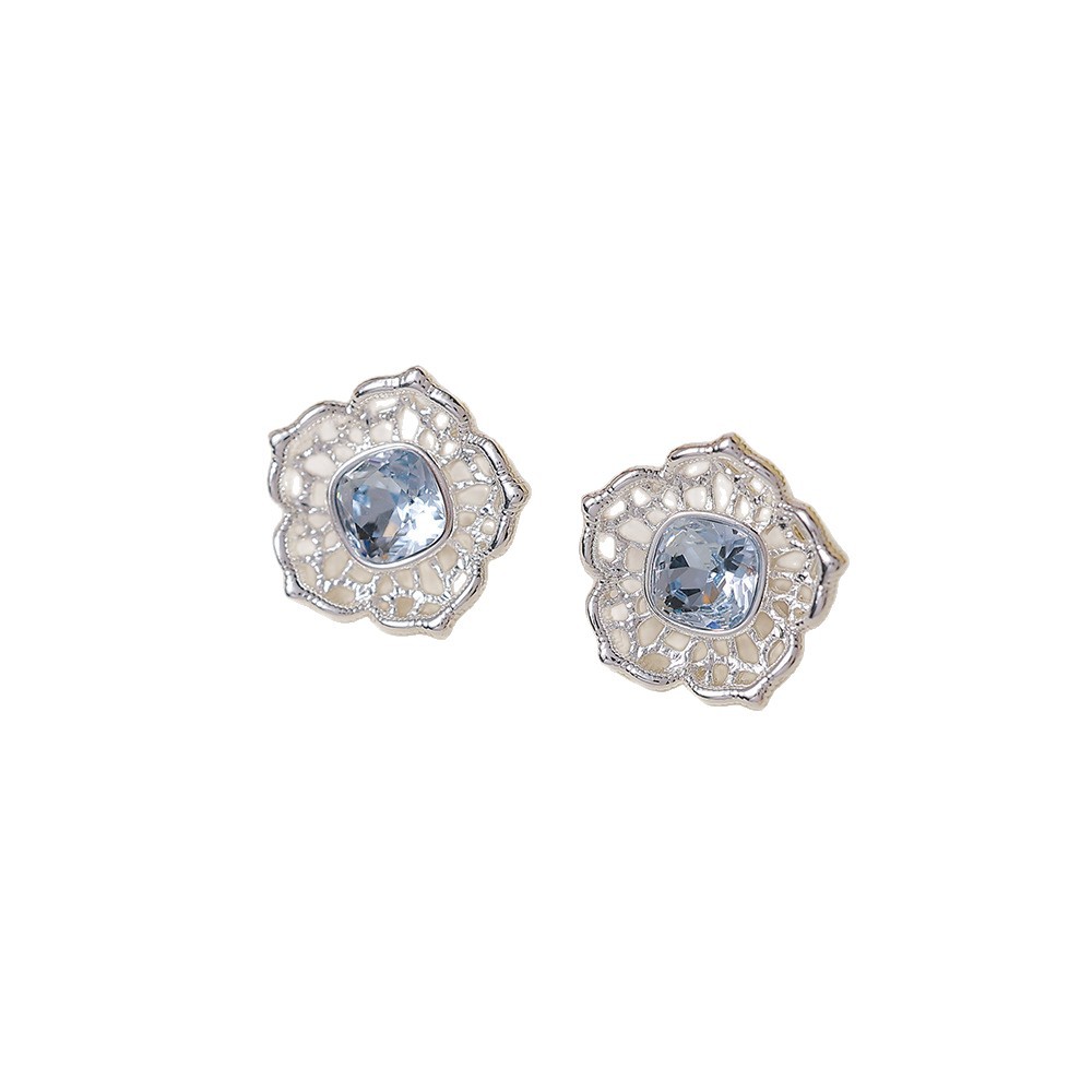 blue zircon flower stud earrings